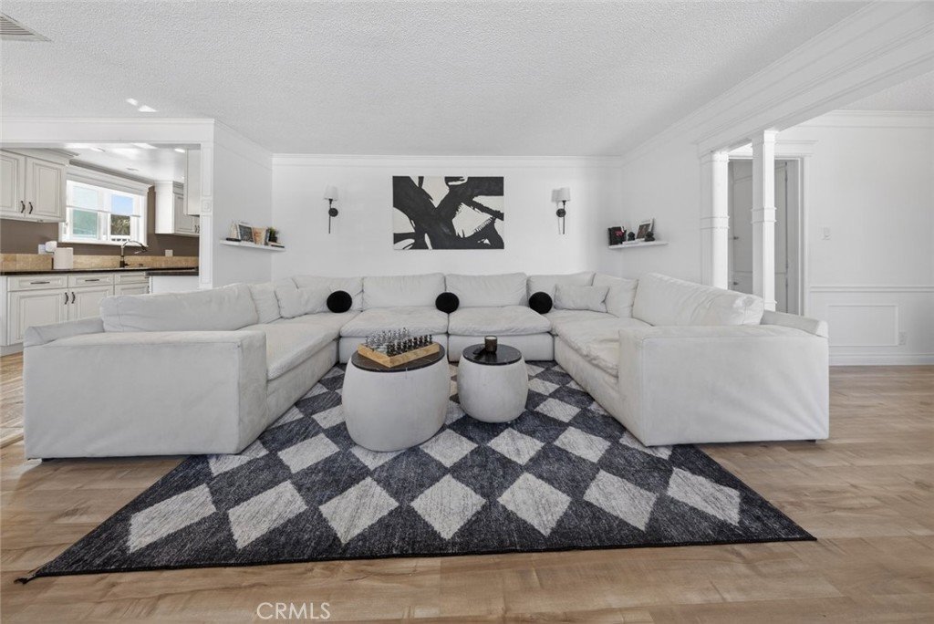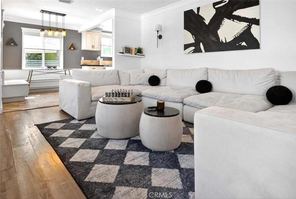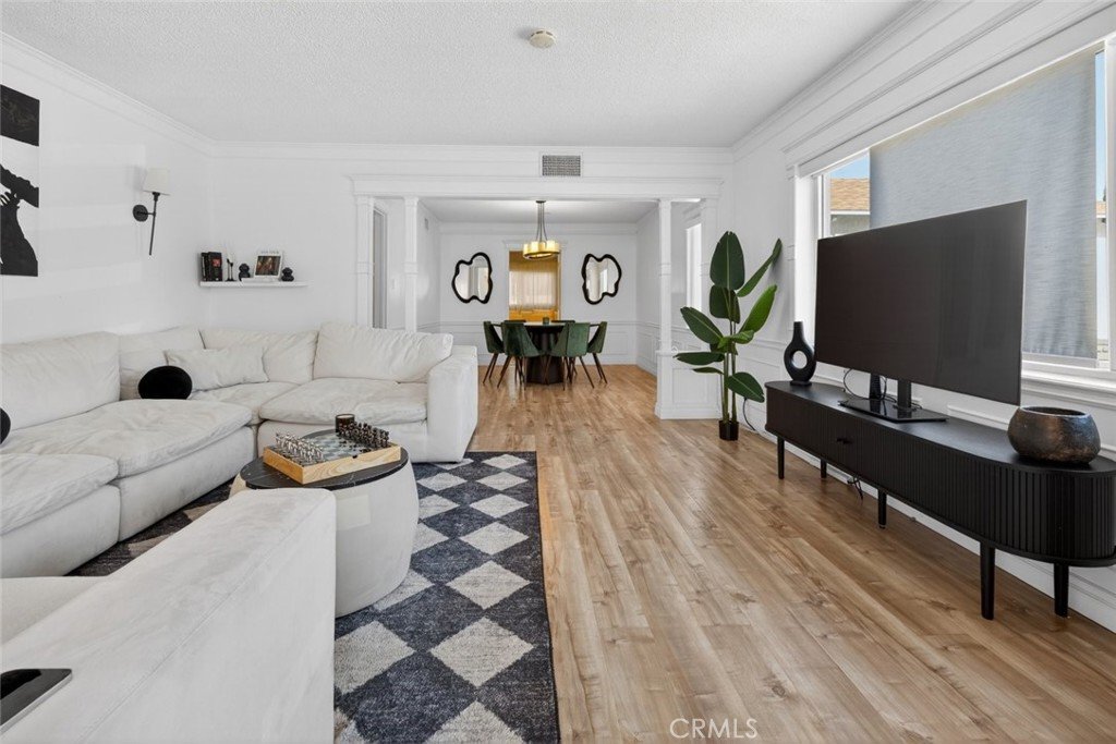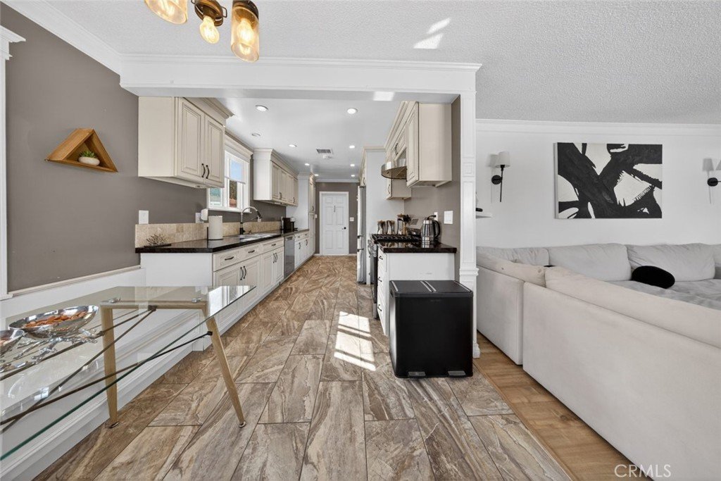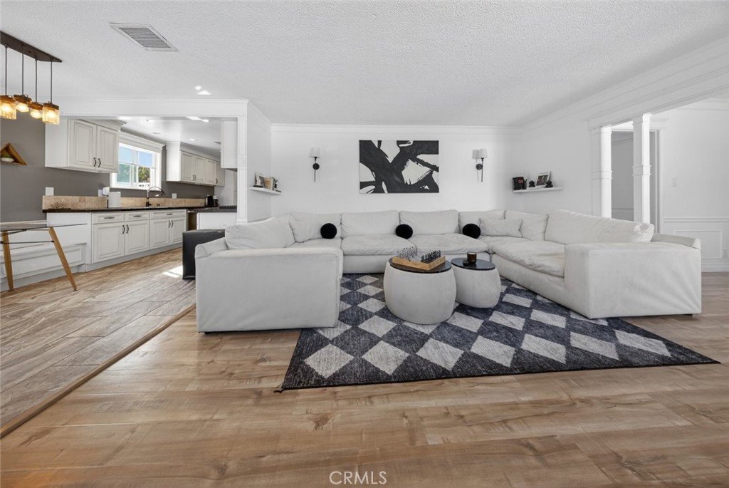 The home features an open floor plan filled with abundant natural sunlight, complemented by upgraded laminate flooring, updated countertops, and attractive cabinetry throughout. The kitchen showcases clean finishes and flows seamlessly into the living and dining areas—perfect for everyday living and entertaining.