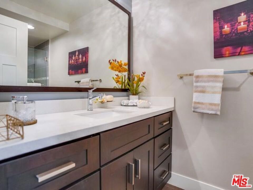 Classic Beverly Hills living at the Almont Regency, a boutique 15-unit Mid-Century condominium on a peaceful, tree-lined street. This 1,611 sq. ft. 2-bedroom + Office/Den 2-bath residence offers a bright, open layout with a seamless flow for entertaining and everyday living.The expansive living and dining area is filled with natural light, while a versatile den just off the living room with a separate terrace entrance serves beautifully as a home office, media room, or private retreat. The south-facing kitchen includes a sunny breakfast nook, while the primary suite boasts a spa-inspired bath with Calacatta marble, dual sinks, separate shower, and soaking tub. Thoughtful conveniences include in-unit laundry, elevator access, and two gated parking spaces.With only three units per floor, the Almont Regency offers boutique privacy, pet-friendly living, and low-density elegance. Located within the highly acclaimed Beverly Hills School District (K12), Horace Mann Elementary is just half a mile away.Perfectly situated between Wilshire Boulevard and Burton Way, this coveted address is walking distance to restaurants, markets, and places of worship, and just moments from the Golden Triangle, Rodeo Drive, premier shopping, and Cedars-Sinai Medical Center. Low HOA dues of $480/month include controlled access, gated parking garage, and elevator service. Newly painted and landscaped.