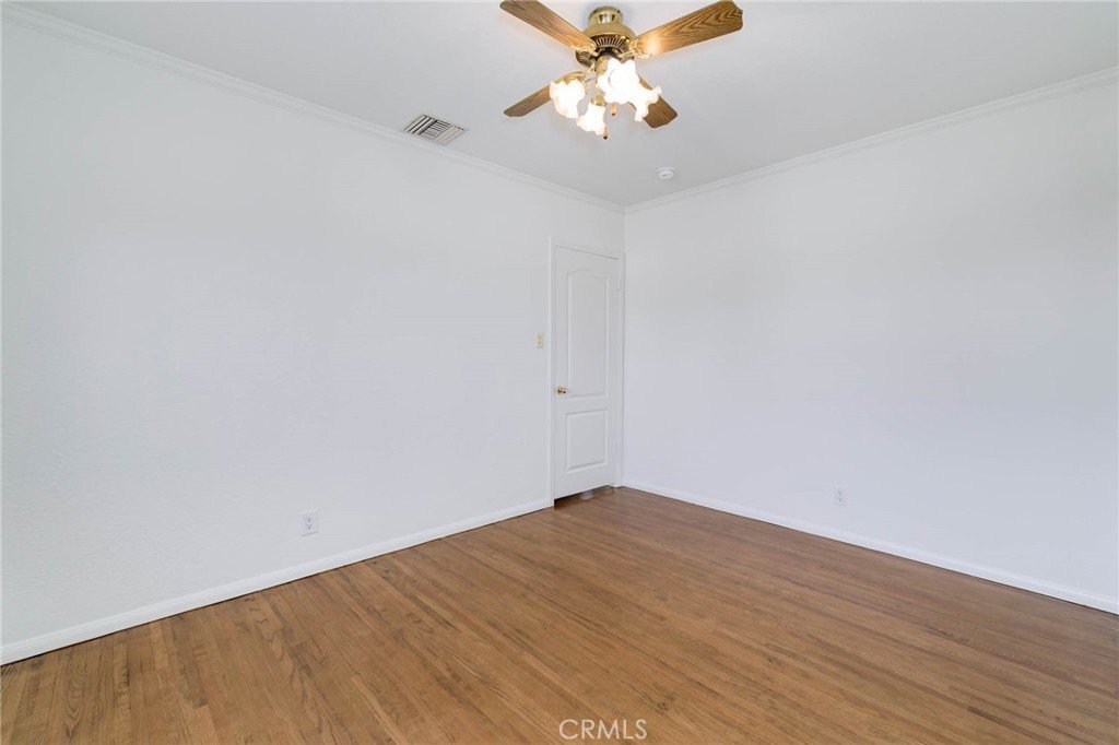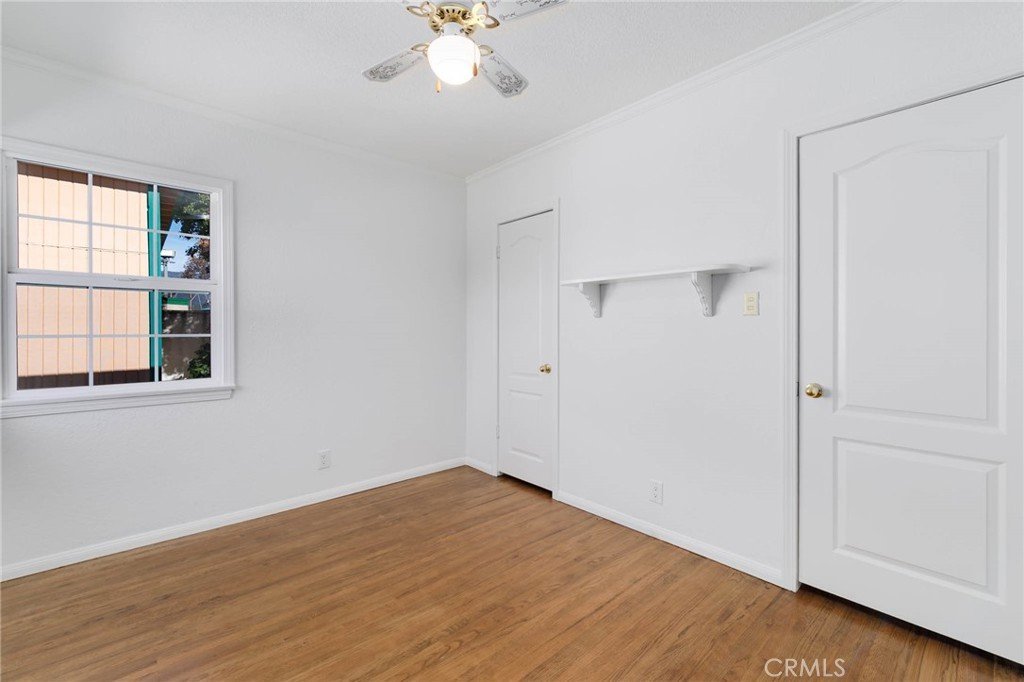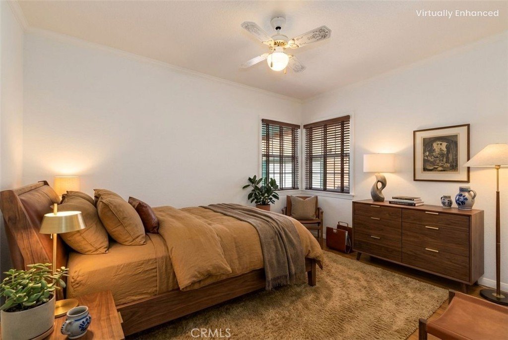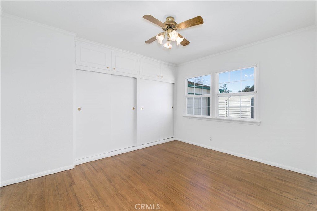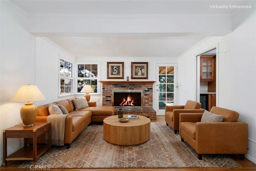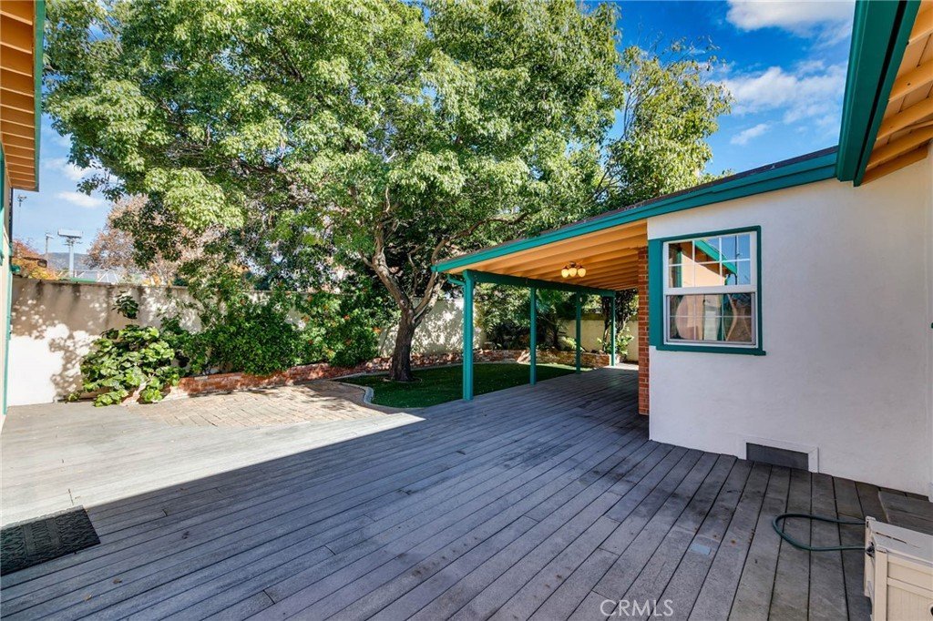 Welcome home to this charming single-story gem nestled on a corner lot in a quiet cul-de-sac, just walking distance to the elementary school. Freshly painted inside and out, this home is full of curb appeal and character. Inside, enjoy hardwood floors throughout with brand-new laminate flooring in the primary bedroom, dual-pane windows, crown molding, and LED recessed lighting that create a bright, welcoming feel. The living room features a large picture window and flows into the dining area with a built-in oak hutch. The kitchen offers granite countertops, oak cabinetry, a farmhouse sink, a brand-new dishwasher, and a built-in microwave. Gather in the family room with a classic brick fireplace and direct backyard access. The spacious primary bedroom features a built-in desk, along with two additional bedrooms, a full hall bath, and a separate laundry room with built-in cabinetry and a wine refrigerator. Enjoy the backyard with a covered Trex patio, ideal for relaxing or hosting guests. 1-car attached garage with pull-through access to an oversized detached 1-car garage with great ADU potential. Move-in ready and easy to fall in love with!