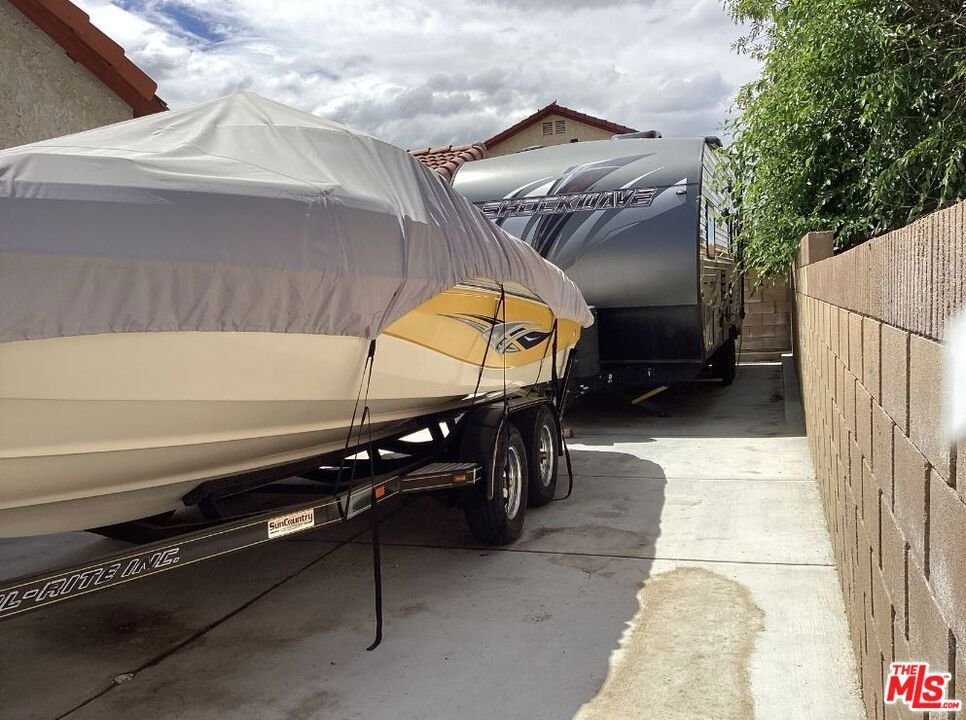 2 HOUSES ON ONE LOT (Accessory Dwelling Unit (aka) ADU) built in 2020. This illustrious Spanish-style beauty features three spacious bedrooms and two full bathrooms in the main house, plus a separate Back-House 2 Good size bedrooms and 2 full bathrooms. The main house features new paint, new laminate flooring, an open floor plan, and appliances. It includes an ample family room with a fireplace and a good-sized kitchen with plenty of cabinet space and countertops. A two-car garage with cabinets and 220 electrical connections is also included. The ADU offers two bedrooms and two full bathrooms and comes fully furnished with stainless steel appliances, a washer, a dryer, wall-mounted flat-screen TVs, a table, and beds, all with its separate gate access and entrance. Exterior amenities include a circular driveway with R.V. access, WITH sewer and power connections, and a covered patio perfect for entertaining. This home is conveniently located near shopping, dining, and schools, as well as Plant-42 Air Force Base, Northrop Grumman, and Lockheed Martin. This property has much to offer and is a must-see. God Bless- Psalm 27:14