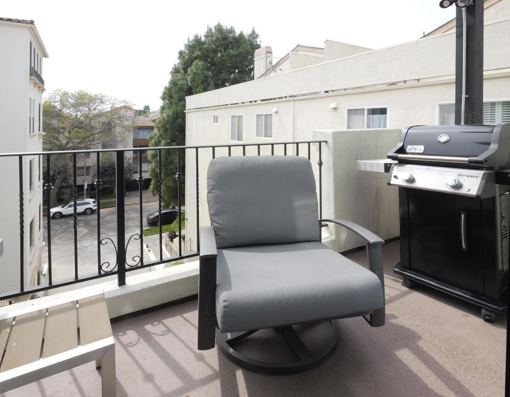 Situated in the highly desirable Westwood neighborhood, this sophisticated top-floor penthouse offers approximately 2,165 square feet of beautifully designed living space, showcasing elegant details throughout. The thoughtfully designed three-bedroom, two-bathroom layout features an expansive open-concept living and dining area complete with 2 fireplace units, rich hardwood floors, designer lighting, and soaring ceilings accented by crown molding.The gourmet remodeled kitchen seamlessly connects to the living area and breakfast nook, and is appointed with marble countertops, ample cabinetry, and premium Viking appliances--perfect for both everyday living and entertaining. The spacious primary suite serves as a private sanctuary, featuring a generous walk-in closet and a luxurious en-suite bathroom with dual vanities and soaking tub illuminated by a skylight above.Step outside to a private balcony overlooking serene, tree-lined views--an inviting space for outdoor dining, relaxing, or enjoying a BBQ.Residents of The Courtyard on Camden enjoy a beautifully maintained building with a charming fountain courtyard, lush landscaping, elevator access, and a secure subterranean garage with two dedicated parking spaces.Ideally located just moments from Westwood Village, UCLA, and an array of premier shopping and dining options, this exceptional residence offers the best of refined California living.