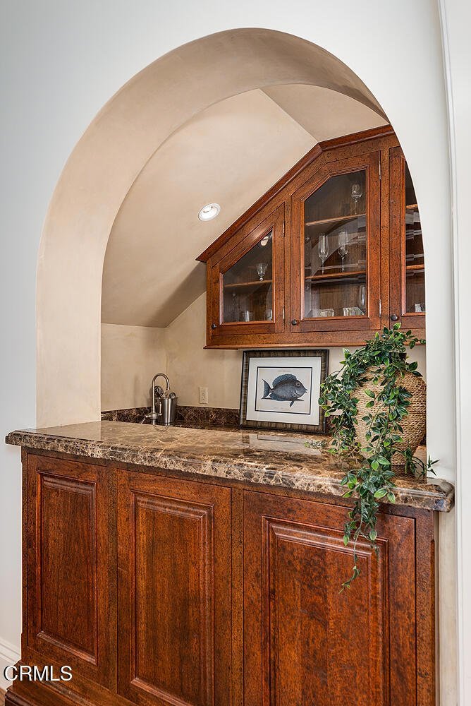 - Interior Features: BeamedCeilings, BuiltInFeatures, Balcony, SeparateFormalDiningRoom, GraniteCounters, HighCeilings, OpenFloorplan, Pantry, StoneCounters, RecessedLighting, Storage, TileCounters, Bar, WiredForSound, Attic, BedroomOnMainLevel, MainLevelPrimary, PrimarySuite, UtilityRoom, WalkInPantry, WineCellar