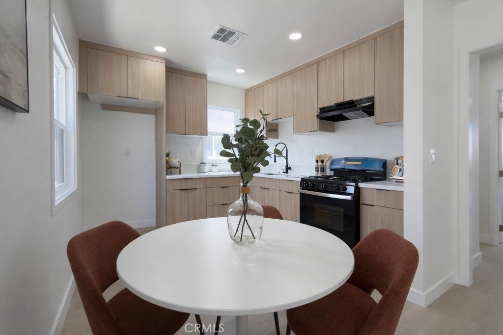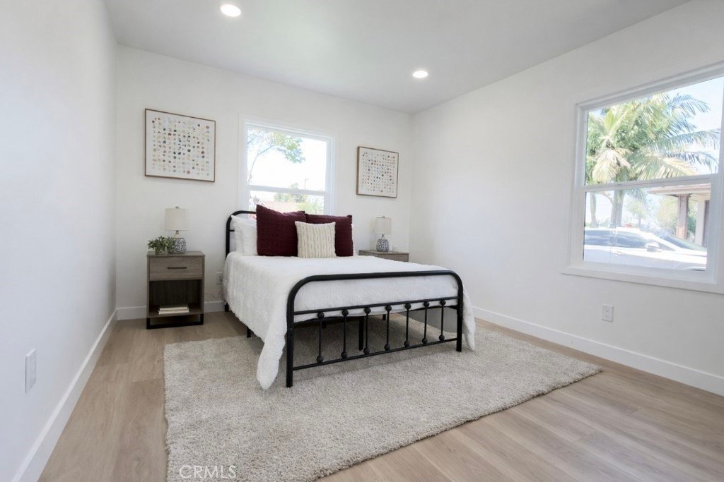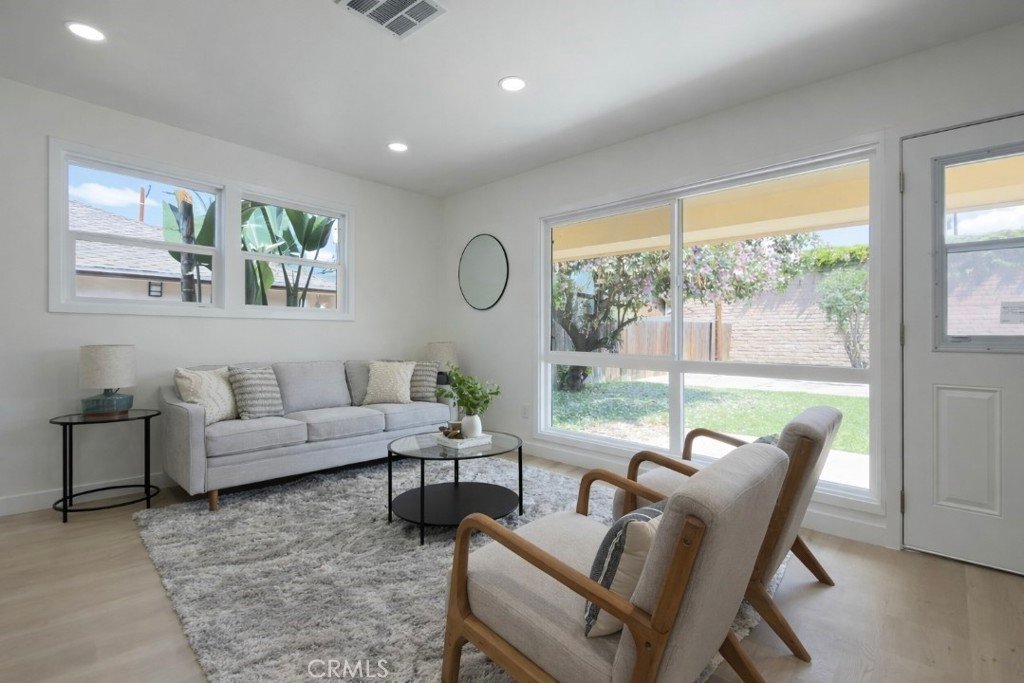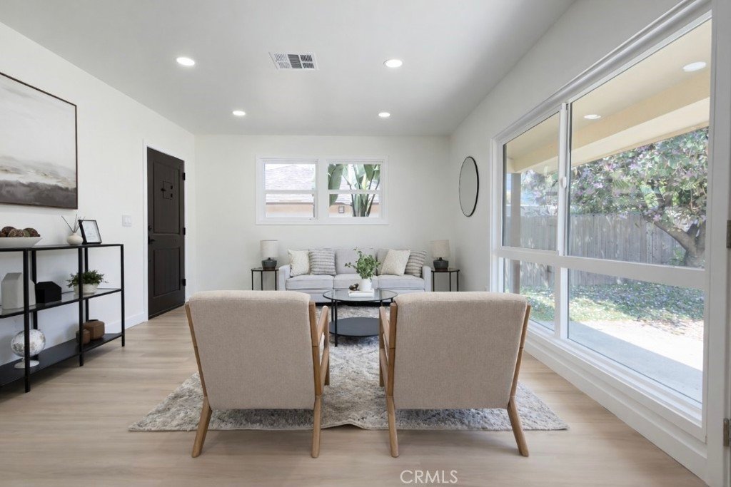 Step inside to a bright and inviting interior featuring large windows that flood the home with natural light, complemented by new recessed lighting throughout. The home has been thoughtfully updated with new laminate flooring, fresh interior and exterior paint, and stylish finishes that create a warm, contemporary feel.