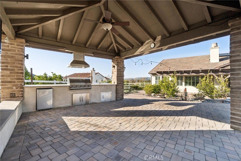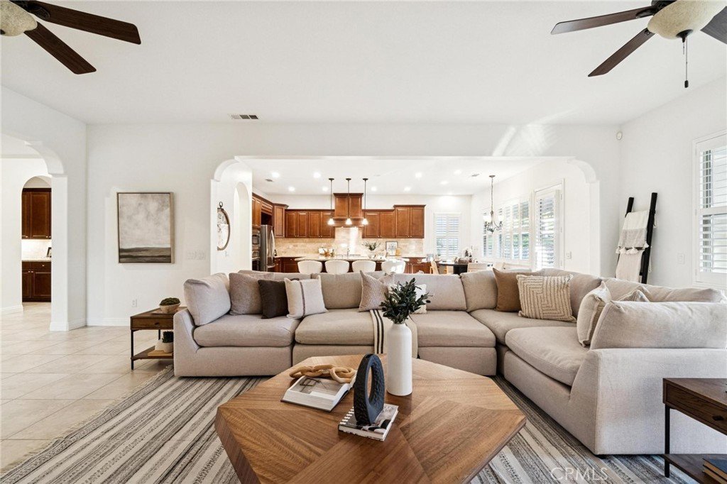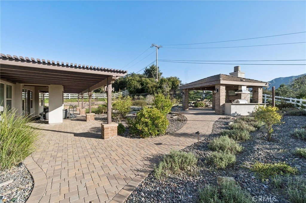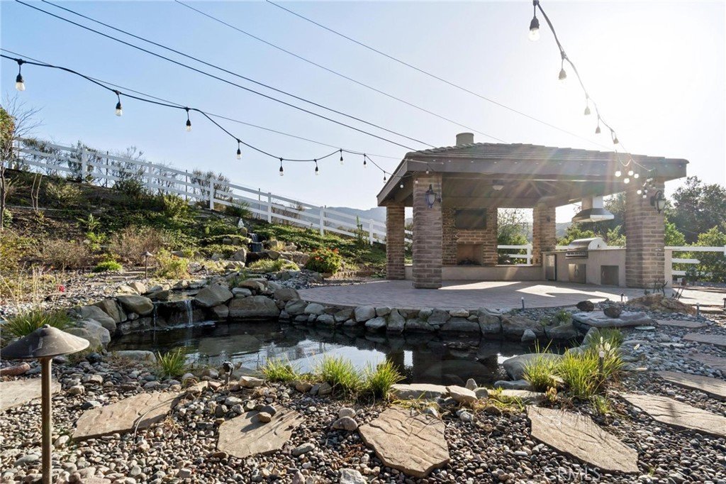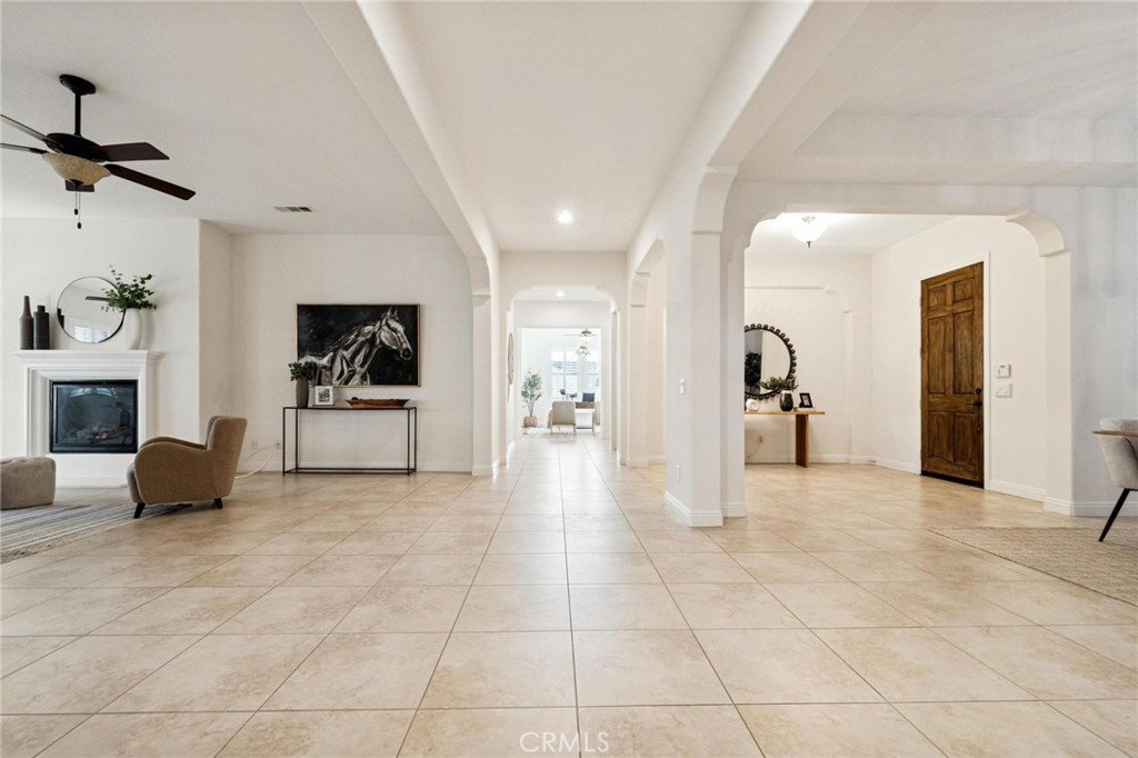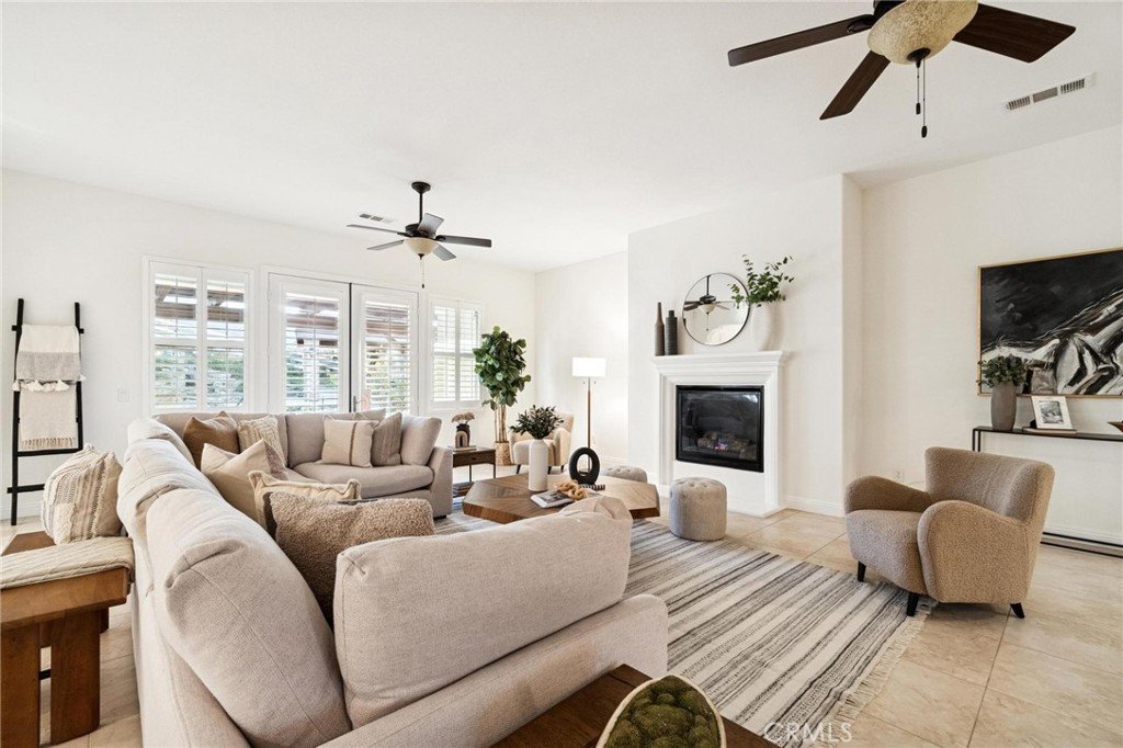 Stunning single-story estate showcasing exceptional pride of ownership in the highly sought-after gated community of The Preserve. Perfectly positioned on nearly an acre, this beautifully upgraded home offers the ideal blend of comfort, elegance, and indoor-outdoor California living. From the moment you arrive, you’ll notice the meticulous care and inviting curb appeal. Inside, the open and airy floor plan is enhanced by gorgeous luxury vinyl plank flooring installed in January 2026, tile flooring in select areas, high ceilings, plantation shutters, recessed lighting, raised baseboards, ceiling fans, a warm and inviting fireplace, and an abundance of storage throughout. Freshly painted and filled with natural light, the home shows beautifully and is truly move-in ready. Designed with flexibility in mind, the spacious layout features 3 generously-sized bedrooms, 3 full bathrooms, a powder room, and an oversized private office that can easily function as a 4th bedroom, media room, or flex space. Additional highlights include a butler’s pantry, an expansive laundry room with ample cabinetry and workspace, and a 3-car garage offering plenty of room for vehicles, storage, or hobbies. Did I mention OWNED SOLAR? The impressive eat-in chef’s kitchen, thoughtfully designed for both daily living and entertaining. It boasts extensive cabinetry, granite countertops, stainless steel appliances, a custom backsplash, and a built-in office nook. The oversized center island with breakfast bar opens seamlessly to the great room, creating a perfect gathering space for hosting or relaxing. The primary suite is a private retreat, offering generous space, peaceful views, and a large walk-in closet. The spa-inspired ensuite bathroom features a walk-in shower, separate soaking tub, dual sinks, a dedicated vanity area, and an additional walk-in closet for exceptional storage. Step outside to an entertainer’s dream backyard where the possibilities are endless. Set on almost an acre, the outdoor space features a stone paver covered patio, a tranquil waterfall and koi pond, artificial turf for easy maintenance, and breathtaking mountain views. The detached-style cabana elevates the experience with a built-in BBQ and fireplace, creating the perfect setting for year-round outdoor gatherings. This home combines space, luxury, and functionality in one exceptional property.