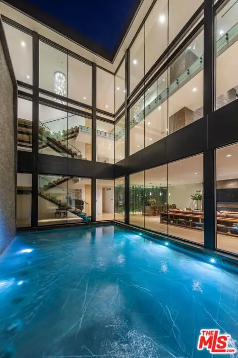 The Perfect Blend of modern architecture, panoramic views, A+ Location and every conceivable amenity. Designed by Paul McClean and built by Tyler Construction to the highest standards. Sited on nearly 2/3 acre promontory with wrap around views of the Pacific Ocean to Downtown Los Angeles. The location is unparalleled in the Palisades Riviera. The centerpiece of this architectural jewel is a 3-story waterfall/courtyard with walls of glass on 3 sides. Envisioned for entertaining on a grand scale, the living room opens to main lawn and the dining room soars with double height ceilings. Gourmet Kitchen and family room adjacent to large infinity-edge pool and covered dining - all with spectacular views to the West. Upstairs, 5 major bedrooms suites, including a primary that rivals the finest hotels in the world. 7 bedrooms in total, makes for an incredible family estate. The Lower level includes game room with bar, wine cellar, state-of-the-art cinema and gym. Car museum with turntable completes this most special offering. One of only a few modern view estates in the Riviera, iconic in every way. Shown only to prequalified buyers.