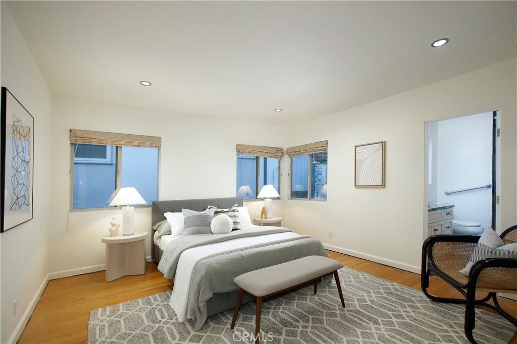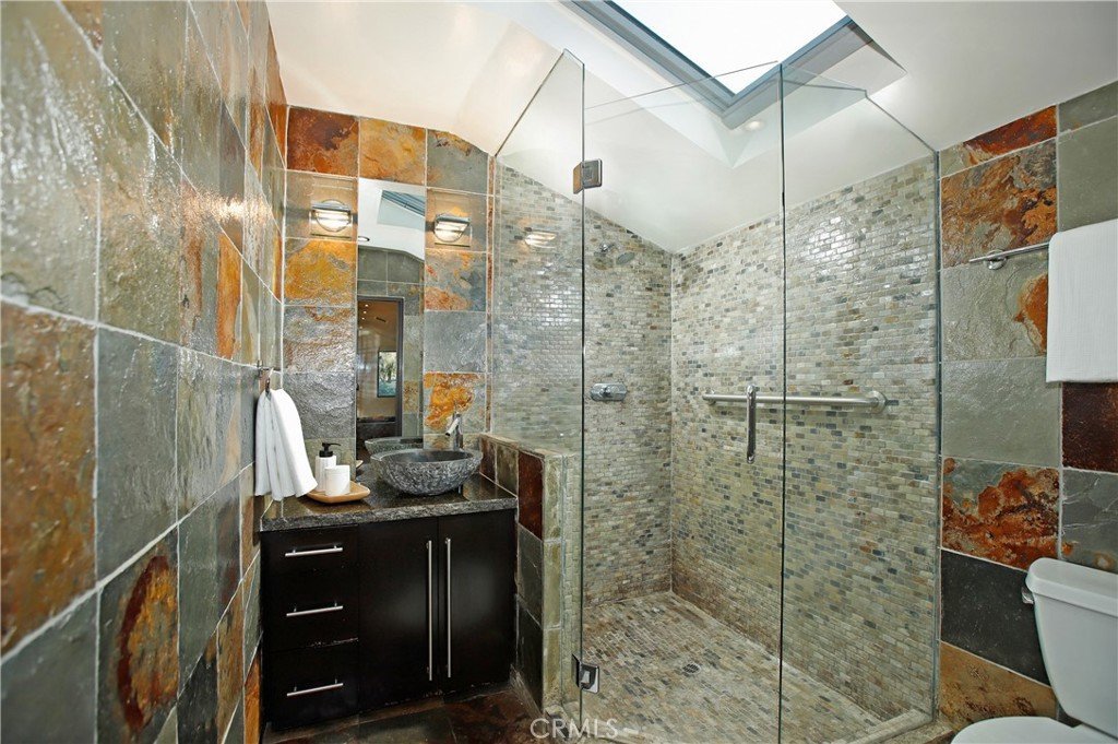 Oakmont Country Club is a treasure with 100 years of history within the Verdugo Woodlands neighborhood. Homes that enjoy a view of its lush grounds are highly sought after, but only 10 homes are “on” the course and can walk out onto the 10th fairway. This is one of those rare and special homes. The large one-story modern design utilizes a sophisticated textural palette and is filled with natural light via walls of glass bringing the beautiful surroundings within the open floor plan of three bedrooms, and four baths around a central courtyard.