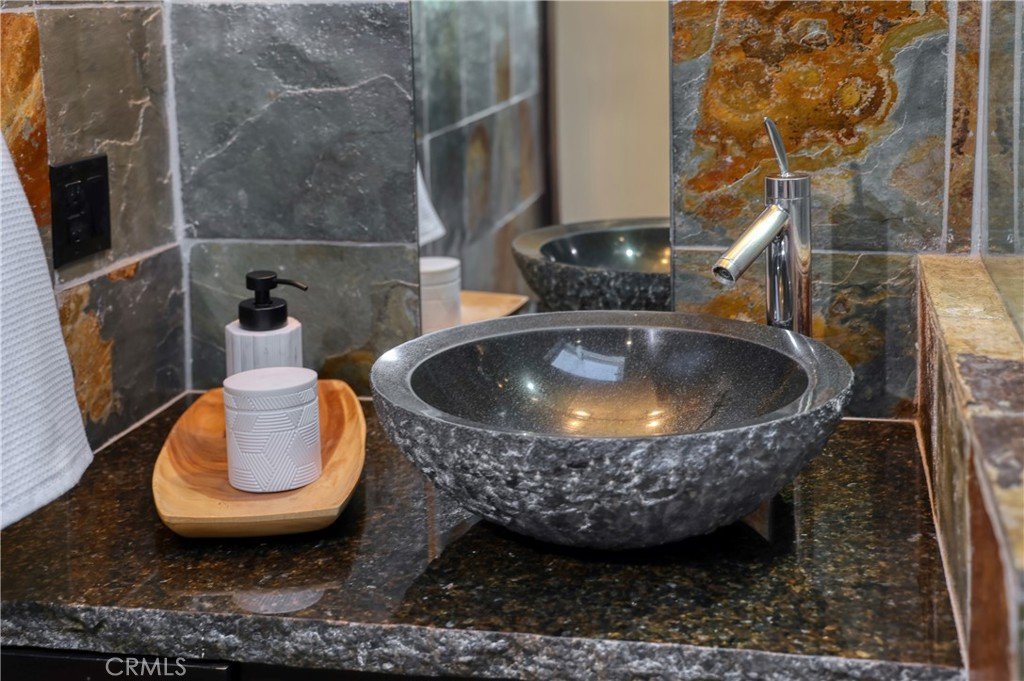 A glass pivot door opens to a large entry and a huge living room with square cut slate floors, an elegant fireplace, custom built-ins, and floor to ceiling glass doors and windows. The artfully remodeled kitchen is central to the design and right in the middle of the entertainment flow with custom cabinetry, polished stone counters, stainless appliances, and a gorgeous granite sink. Other than Augusta, the family room is the best place to watch the Masters with a view out over the lush golf course. The primary suite enjoys a huge primary bedroom with views out over the course, a large walk-in closet, its own remodeled primary bath complete with a water fall soaking tub. The other two bedrooms are suites as well with their own updated baths and large closets.