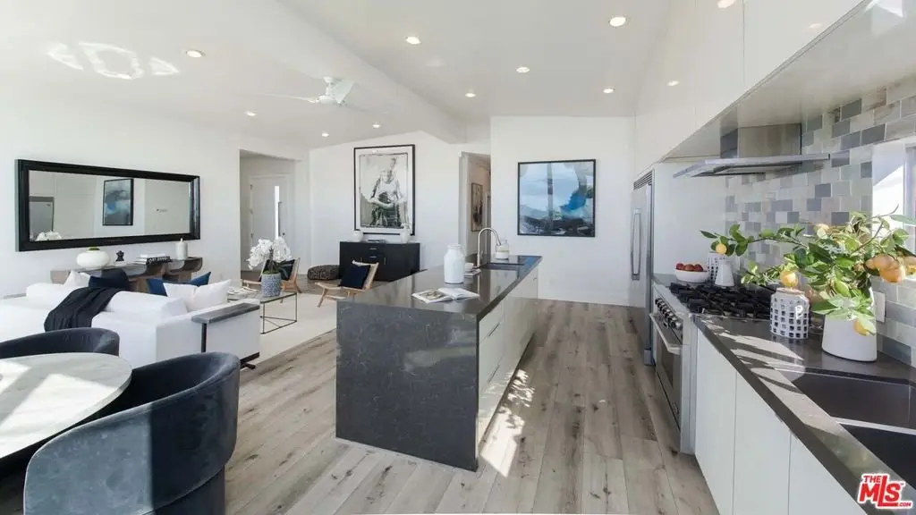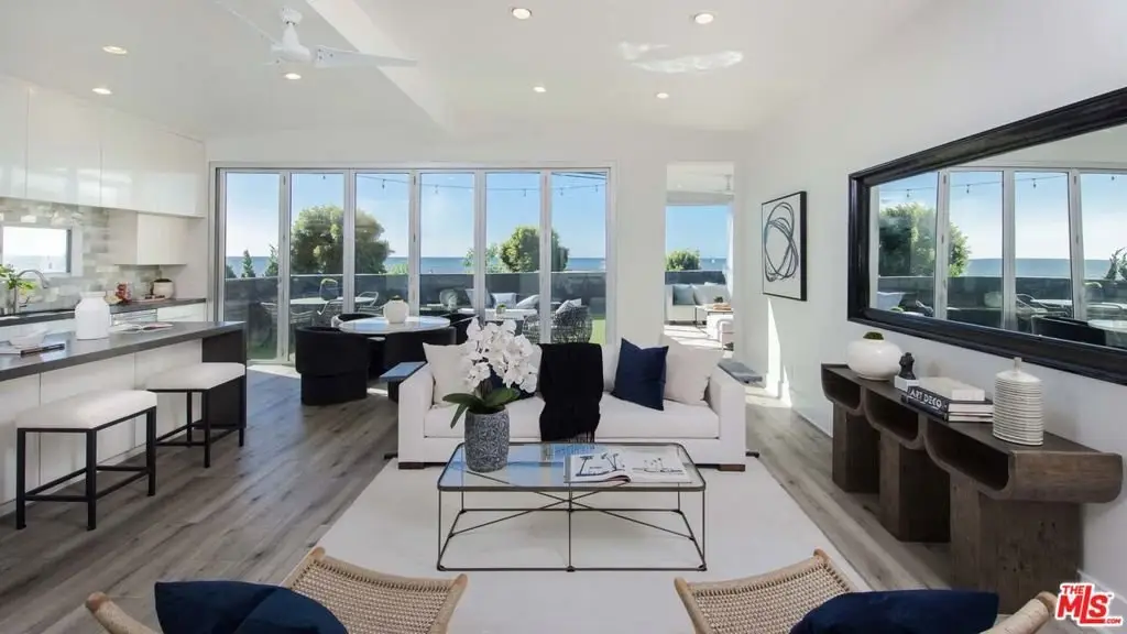 Nearly 2,000SF of modern living in this Pacific Palisades beach home with sweeping ocean-views from Palos Verdes to Malibu. This recently renovated 4 bed, 2 bath residence boasts floor to ceiling windows along two walls and bi-folding doors that open to a private entertainers patio looking out to the sandy beach and crashing waves. This thoughtfully designed bright, cheerful, sun-filled home features vaulted 12' ceilings, open concept living room and kitchen with 10' island, a beautiful ensuite master bath with soaker tub, plenty of storage and three-car side-by-side parking. Minutes to hiking and biking trails, and the Palisades Village with shopping, dining and top-rated schools. The home is uniquely positioned across from Will Rogers Beach just off the Pacific Coast Hwy in an understated up and coming beachside community of the prestigious Pacific Palisades. Community pool and spa. Crosswalk for easy access to beach with volleyball nets, swings, bike boardwalk and surfing. Few homes capture the essence of California living like this Pacific Palisades, ocean-view Beach Bungalow. Land lease of $1,424.50/ month.