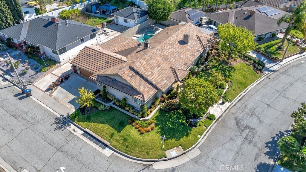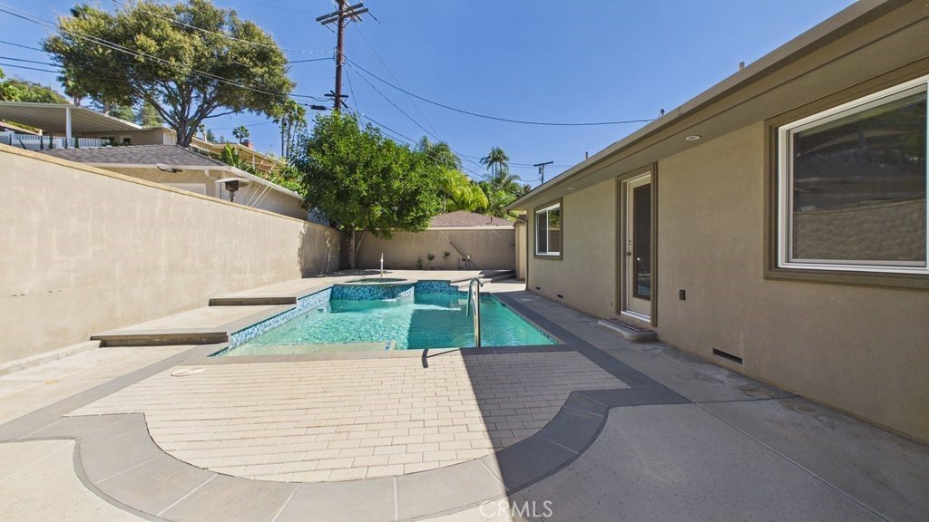 Enjoy the best of Southern California outdoor living in the backyard featuring a sparkling swimming pool and spa perfect for relaxing or hosting gatherings.