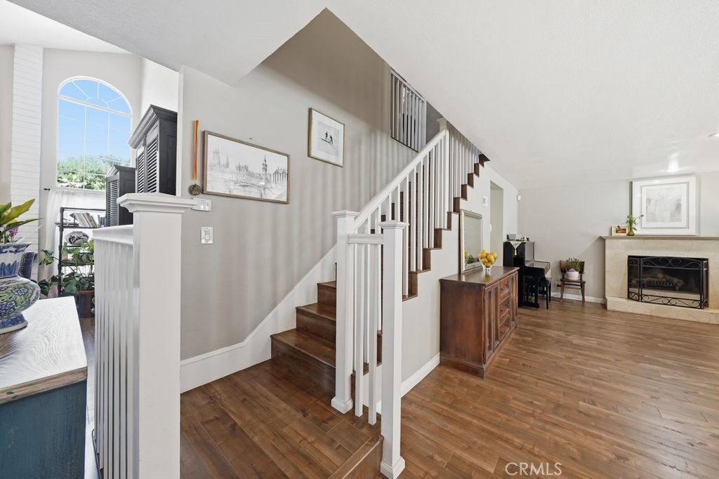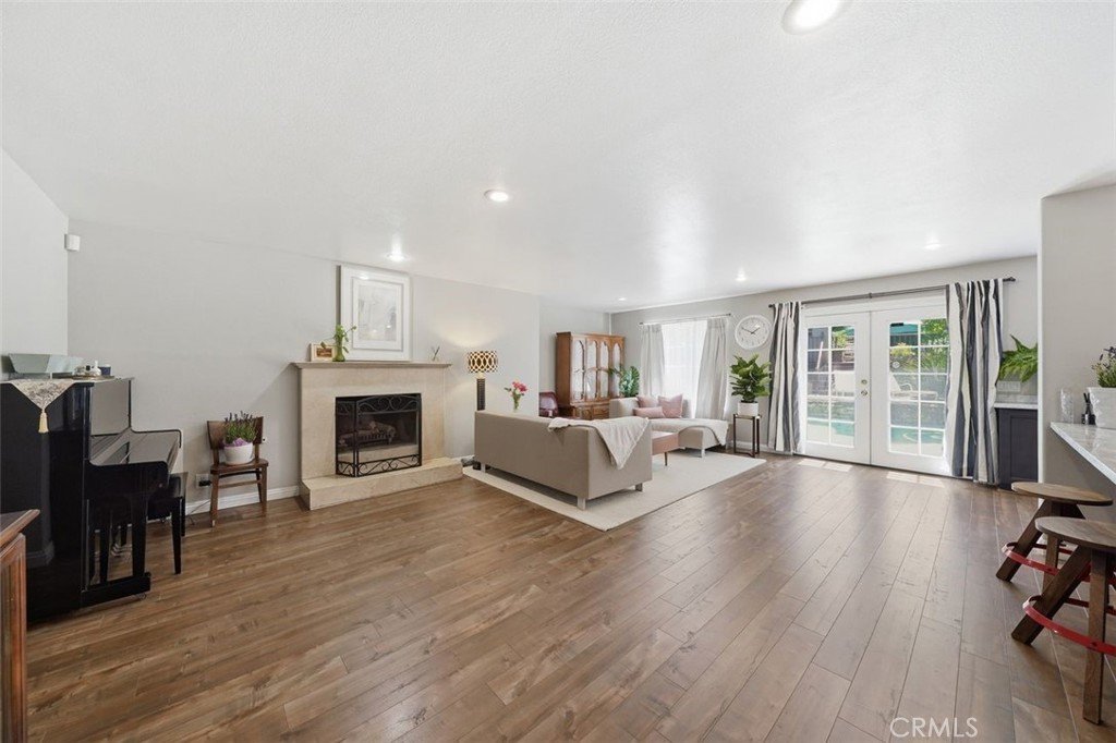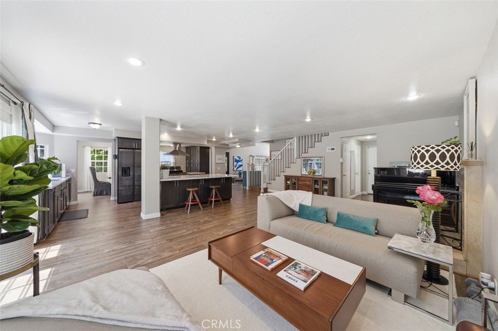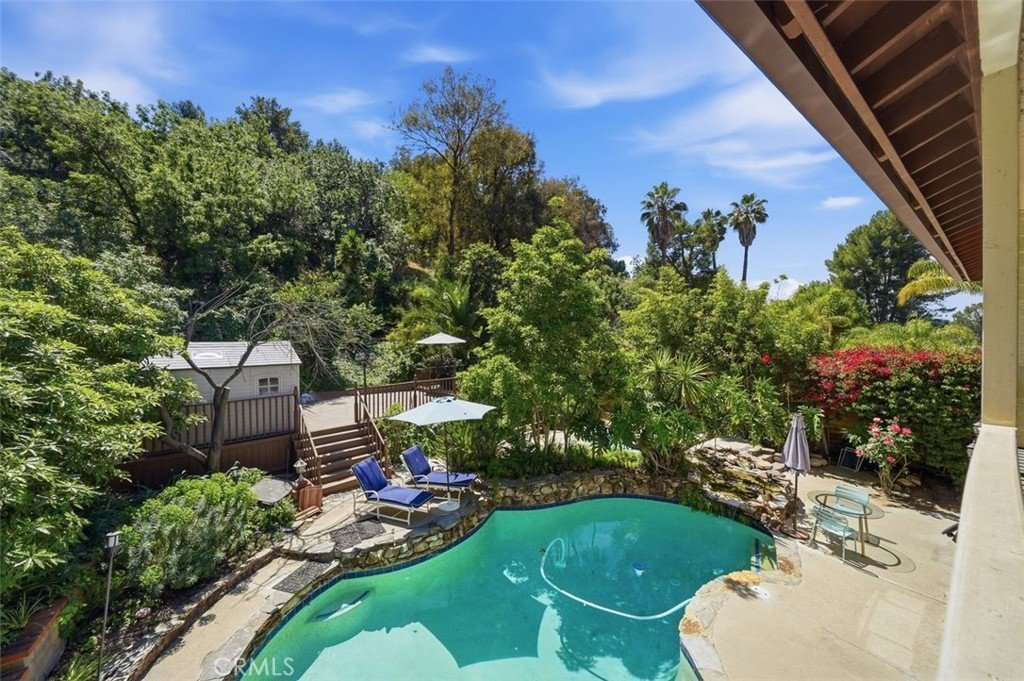 Exquisitely remodeled residence situated on a quiet cul-de-sac, offering exceptional privacy and a resort-style backyard retreat. Lush landscaping surrounds a sparkling pool and spa with cascading waterfall, creating a serene and sophisticated outdoor setting.