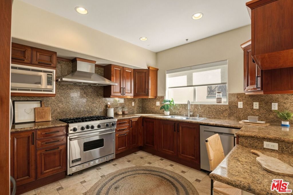 Spectacular townhome in one of West LA's most coveted, walkable neighborhoods. A rare four-bedroom thoughtfully designed layout spans four levels, beginning with a direct-access private two-car garage. Main floor welcomes you through open foyer into dramatic living room with breathtaking 20-foot ceilings, creating a light-filled sanctuary. Adjacent dining area flows seamlessly into kitchen featuring Viking appliances and breakfast dining room, while powder room provides convenience for guests. Second floor features versatile loft with wet bar, private terrace, two additional bedrooms and full bath. Third level houses expansive primary suite with fireplace, luxurious en-suite bath and enormous walk-in closet, alongside generous second bedroom with additional walk-in and private bath. Rooftop terrace offers personal retreat under city skies. Designer finishes throughout include hardwood floors and new HVAC. The well-managed HOA boasts reserves exceeding 120% of annual budget with dues held essentially flat over the last five years. Unmatched location earns walk score of 87. Daily essentials are effortless: Gelson's, Target, Trader Joe's, and more moments away. Stoner Rec Center steps away. Brentwood, Century City, and UCLA minutes away by car and Santa Monica beaches just 15 minutes west. True Walker's Paradise for those demanding sophistication and convenience.