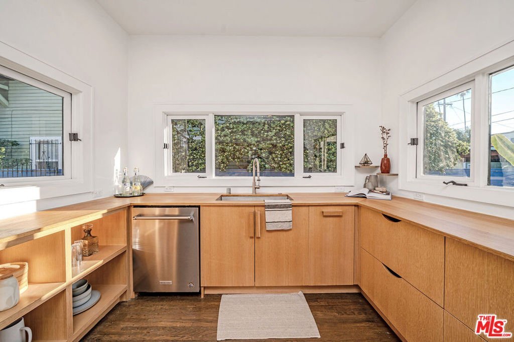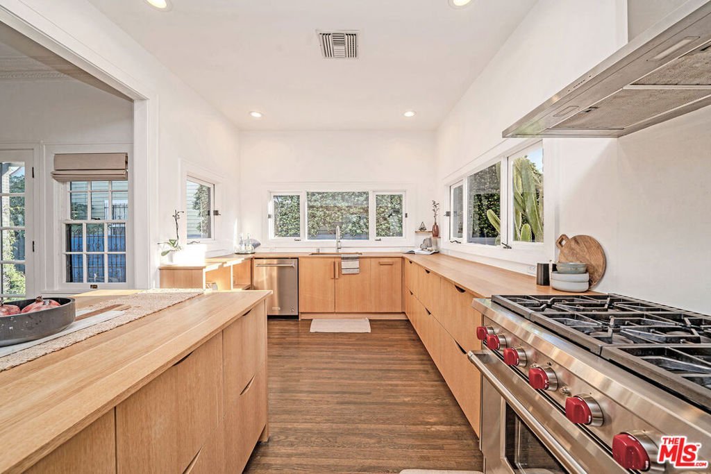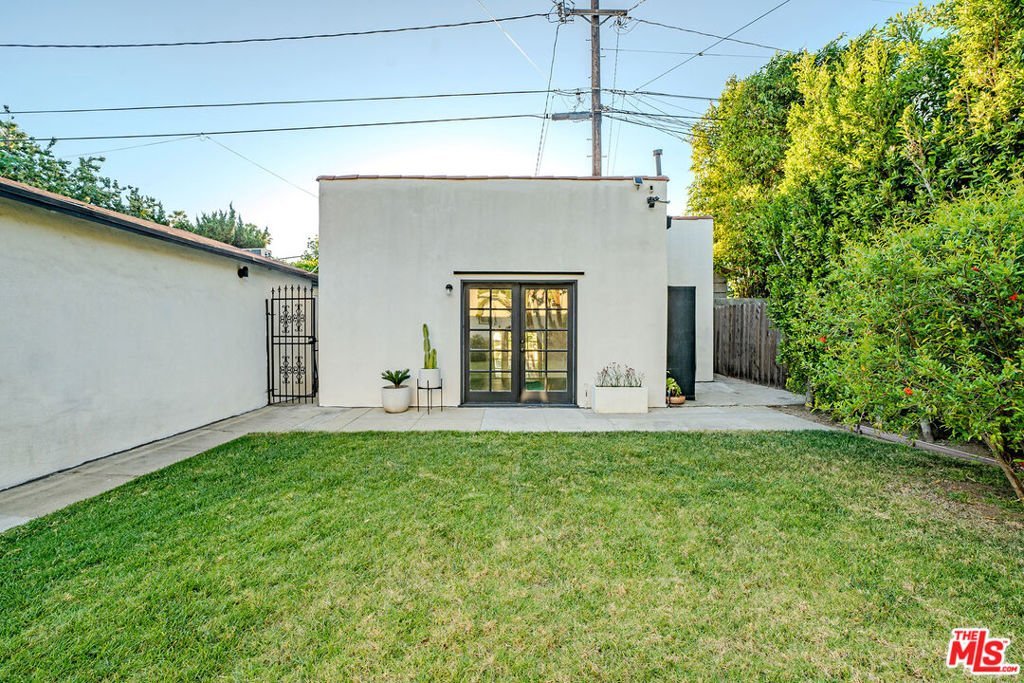 Unique opportunity to own this peaceful urban retreat in the heart of Koreatown! This 3-bedroom, 3.5-bath Spanish bungalow with a separate finished studio offers a modern reimagining while preserving its timeless classic charm. Tucked behind a private perimeter gate and surrounded by drought-tolerant landscaping, this home provides tranquility and added privacy. Inside, you'll find original oak floors, tall ceilings, detailed moldings, French doors, and plenty of natural light. The open living room flows seamlessly into the den/office (or 4th bedroom), and the formal dining room is spacious enough to entertain many guests. It leads to a large chef's kitchen with an oversized island that doubles as both a kitchen and dining area, featuring high-end appliances including a WOLF range, Fisher & Paykel refrigerator, and custom cabinetry. The primary suite offers a spa-inspired bath, while both additional bedrooms provide ample space. Outside, the expansive backyard is a true oasis, combining lush grassy areas, mature banana palms, and vibrant bougainvillea, offering plenty of room for both play and relaxation. Behind the main residence, a beautifully finished studio can serve as a guest suite, creative space, or recreation room. The newly renovated garage includes custom storage, adding more utility. Conveniently located near Larchmont and Hancock Park, with easy access to all of LA's amenities and attractions. Don't miss out, come see this property before it's gone!