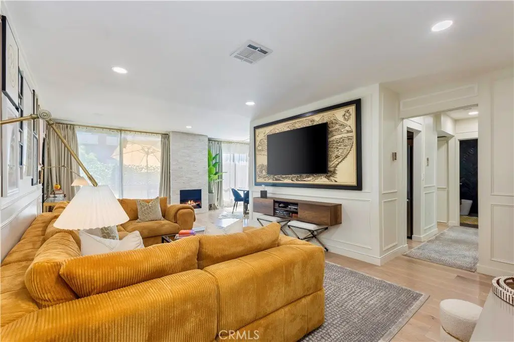 Top-Floor Hollywood Hills Condo • Seller Offering Rate Buy-Down. Seller offering a rate buy-down to help reduce the buyer’s monthly payment. This beautifully reimagined top-floor one-bedroom condo offers 831 square feet of refined living in a prime Hollywood Hills location, just moments from Runyon Canyon and the Sunset Strip. East-facing and filled with natural light, the residence has been thoughtfully updated to blend comfort, design, and high-end finishes throughout. Light-toned oak-style floors, custom millwork, and trimless LED lighting are enhanced by WiFi-enabled Lutron smart switches for seamless ambiance control. The kitchen is both stylish and functional, featuring custom soft-close cabinetry, quartzite counters, handcrafted tile, a Bosch paneled dishwasher, and GE smart appliances—including a range and a refrigerator with built-in ice maker. The sunlit dining area is anchored by elegant drapery and a decorative stone fireplace that adds warmth and architectural interest. The spa-inspired bathroom is appointed with a marble countertop, Moen fixtures, a Kohler soaking tub, and a separate glass-enclosed shower clad in dramatic herringbone tile. The spacious bedroom offers abundant natural light and a walk-in closet, while a large hall closet provides additional storage. The pet-friendly building offers a full suite of amenities, including a gym, sauna, rec room, barbecue area, media lounge, and a fully renovated pool and hot tub coming soon. A new elevator provides access from the secure garage, where two tandem parking spaces are included. Set near the best of Hollywood and West Hollywood, this designer retreat offers turnkey living in one of LA’s most vibrant neighborhoods.
