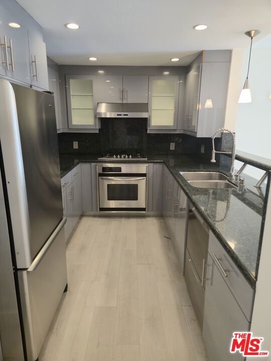 Bright, front-facing condo in the heart of Westwood. The updated kitchen features stainless steel appliances, modern cabinetry, and elegant dark granite countertops. The open living room is filled with natural light and flows seamlessly to a spacious balcony with a great view, perfect for relaxing or entertaining. The primary bedroom includes an oversize closet with custom cabinetry, while the primary bathroom offers a standing shower, modern floating vanity, and a cast iron tub. Recessed lighting throughout.