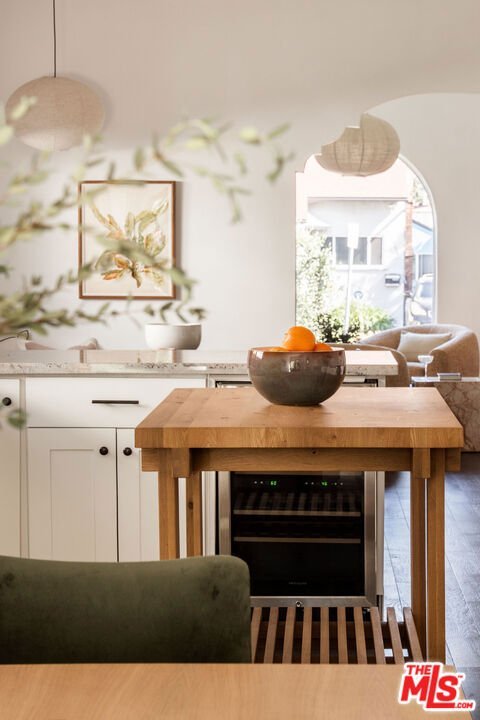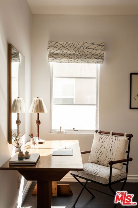 Tucked into the charming and sought-after pocket of Picfair Village one of Mid-City Los Angeles' most beloved neighborhoods this beautifully reimagined 3 bedroom 3 bathroom Spanish home blends timeless character with thoughtful modern updates. An inviting front porch welcomes you into a light-filled living room anchored by a striking fireplace and framed by soaring beamed ceilings that create an incredible sense of volume. Classic arched windows pour in natural light, highlighting the architectural details that give the home its warmth and charm. Just off the main living space, a cozy breakfast nook with a built-in banquette offers the perfect place for morning coffee or relaxed meals. The kitchen serves as the true heart of the home, thoughtfully designed with ample storage and a layout that makes everyday cooking and entertaining effortless. Toward the rear of the home, the dining area provides a lovely setting for gatherings and opens through wood sliders to the backyard, creating seamless indoor-outdoor flow. Two comfortable bedrooms are located on the main level, including one with an en-suite bath. Upstairs, the private primary suite offers a peaceful retreat with lovely natural light and windows that overlook the surrounding neighborhood and city beyond. Once outside, the backyard has been tastefully landscaped to create a tranquil escape perfect for relaxing or hosting friends. A finished garage with a mini-split system provides versatile bonus space ideal for a home office, gym, studio, or creative workspace. This is a rare opportunity to own a beautifully updated Spanish home in such a special neighborhood surrounded by character homes, a growing collection of restaurants, and a strong sense of community.