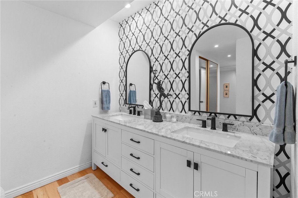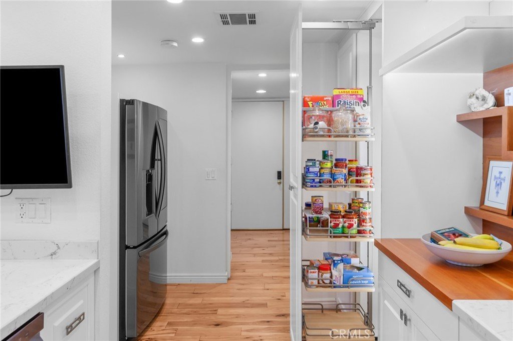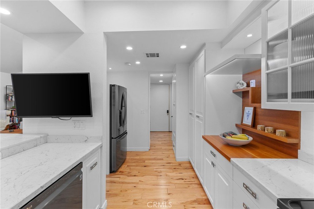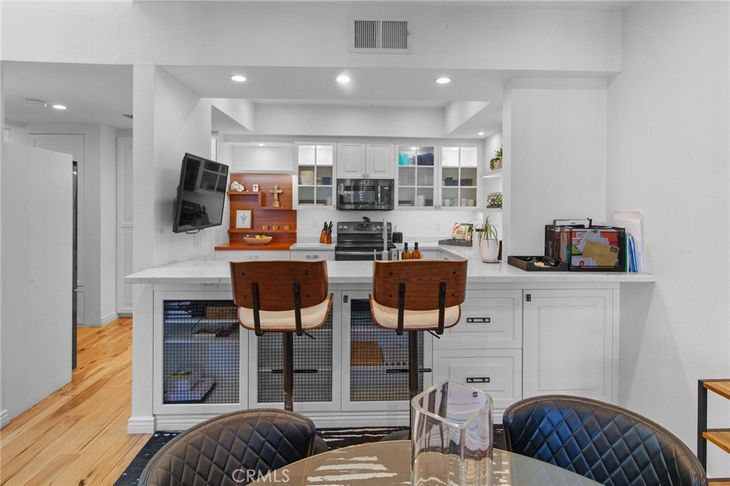REDUCED!! Located in the Heart of Encino, this Stunning Top-Floor Penthouse offers a Rare Combination of Chic Style & Convenience. This Unit is a Model-Perfect Residence that has been Extensively Upgraded to provide a Sophisticated, Turnkey Living Experience. The Home offers Soaring Cathedral Ceilings with an abundance of Natural Light Streaming through the Gallery-Style Dual Paned Windows. The Designer Kitchen is a Custom-Built Culinary Masterpiece featuring an Artisan-Designed Layout with Stone Countertops, Premium Stainless Steel Appliances, a Farmhouse Sink, Wine Refrigerator and Elegant Glass Cabinetry. The Unit has Gorgeous Wide-Plank Hardwood Floors that Flow throughout the unit. The Living Room includes a Wet Bar with a Wine Refrigerator, perfect for Entertaining, along with a Sliding Glass Door that opens to the Spacious Tiled Balcony making it an ideal spot for an Urban Garden or Sunset Dining. The Primary Suite offers a Serene Retreat with Vaulted Ceilings, Dual Sinks, Multi-Mirrored Closets and a Lavish Primary Bathroom with a Dedicated Dressing Area. The Unit also includes Central Heating/AC, Recessed Lighting, All 4 Mounted TV's, Plantation Shutters and tons of Natural Light. It also includes 2 side-by-side Subterranean Parking Spaces with Additional Parking. Situated in the well-maintained "White Oak Encino" Complex, Residents enjoy a Resort-like Atmosphere with Lush Landscaping and Mature Trees. Amenities include a Sparkling Pool, Indoor Spa, Sauna & Recreation Room. HOA Perks: Dues cover Earthquake Insurance, Water, Gas, Trash and Common Areas Maintenance. The Complex is walkable to Ventura Blvd., Premier Shopping, Trader Joe's, World-Class Dining and Close to Freeway Access. Most of the furniture can be included as part of the sale.