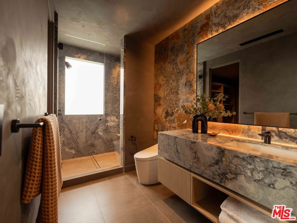 Perched above the Sunset Strip within one of the area's only gated and secure enclaves, 1778 Viewmont stands as the crown jewel of this private, controlled-access community. Positioned at the end of a quiet cul-de-sac, this approximately 6,300-square-foot modern masterpiece is the largest of only six residences behind the gates, offering a rare level of discretion and security alongside unobstructed jetliner views stretching from the city skyline to the Pacific Ocean. Recently reimagined from the ground up, the residence showcases a refined contemporary aesthetic defined by clean lines, warm textures, and sophisticated materials. Inside, expansive open living spaces are framed by floor-to-ceiling glass, flooding the home with natural light while maintaining a true sense of seclusion an ideal retreat from the city below. White oak floors run throughout, complemented by smooth plaster walls, custom millwork, and designer accent lighting that creates a gallery-like ambiance day and night. The chef's kitchen is anchored by travertine stone countertops, integrated Wolf and Sub-Zero appliances, and sleek European cabinetry perfectly suited for both everyday living and large-scale entertaining. Seamless indoor-outdoor living connects the main living areas to an expansive terrace featuring a zero-edge pool and spa, lush landscaping, built-in grill, and grassy yard, all oriented toward the panoramic skyline while remaining thoughtfully shielded within this gated setting. Four ensuite bedrooms, including a serene primary suite with fireplace, oversized walk-in closet, and spa-like bath, provide exceptional comfort and privacy. Additional amenities include a state-of-the-art home theater, world-class gym, and spacious den and bar area that open directly to the pool.Offering a rare combination of privacy, security, and exceptional design, 1778 Viewmont Dr is tailored for those who value discretion without compromise. Securely tucked behind gates, yet just moments from the world-class dining, shopping, and entertainment of the Sunset Strip and Beverly Hills.