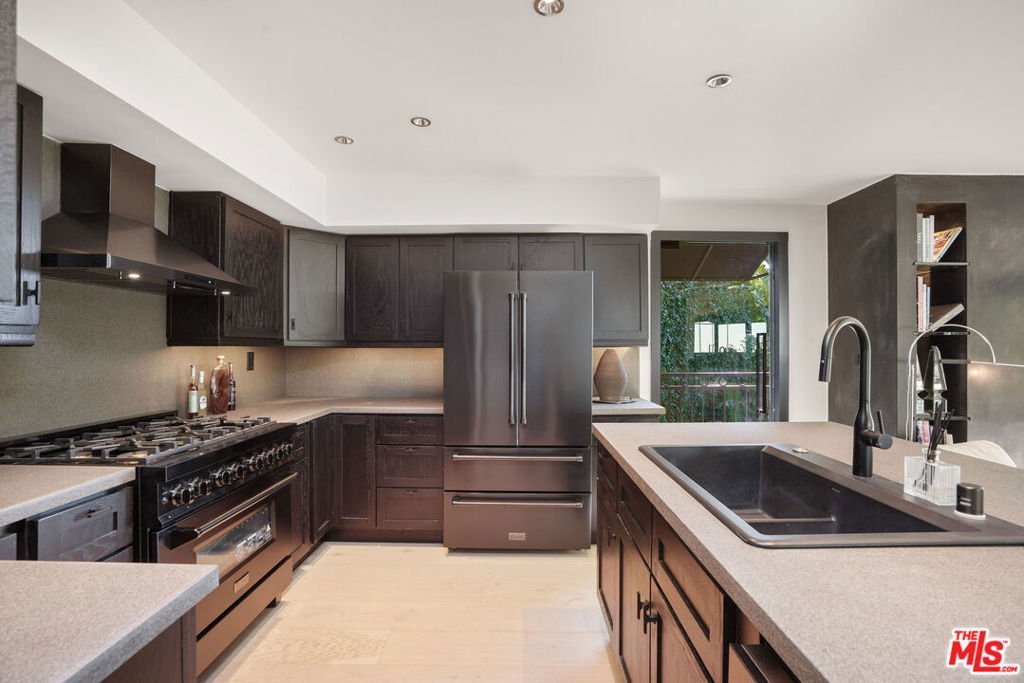 Gated, Floor to Ceiling, Glass-Wrapped Architectural Sanctuary with City and Ocean Views, Rare Outdoor Living Above Sunset Plaza! Floating high above Sunset Plaza, this newly reimagined, iconic architectural, 2 primary suite, 4 bath, plus permitted Junior ADU, residence by Roger Davis is a rare expression of glass, light, and elevated living in the Hollywood Hills. Privately gated, with 2+ parking and set beyond a dramatic arrival, inside, the architecture unfolds with intention. Wide-plank floors guide you through expansive living spaces wrapped in floor to ceiling glass, capturing breathtaking city lights and ocean views that shift beautifully from sunlit days to glittering nights. A striking glass staircase serves as a sculptural centerpiece, allowing natural light to flow effortlessly between levels and enhancing the home's airy, gallery-like feel. The newly remodeled open kitchen blends refined design with modern functionality, perfectly positioned for elevated entertaining and everyday living. The main residence features two full, large primary suites, each conceived as a private sanctuary with walk-in closets, spa-inspired baths, and dramatic walls of glass framing the skyline. Washer/dryer hookups on every level add an uncommon layer of comfort and convenience. What truly distinguishes this home is its exceptional outdoor living, a rarity in the Hollywood Hills. A large, grassy, flat yard, with additional outdoor seating areas, and a private balcony create a resort-like setting ideal for entertaining, lounging, or quiet moments above the city. An attached junior ADU with its own private entrance, bedroom, and bathroom offers remarkable flexibility for guests, creative use, or income potential, all while remaining seamlessly integrated into the architecture. Bold, refined, and unmistakably iconic, this Roger Davis creation is more than a home, it is a statement of design, privacy, and elevated Los Angeles living. A must see!