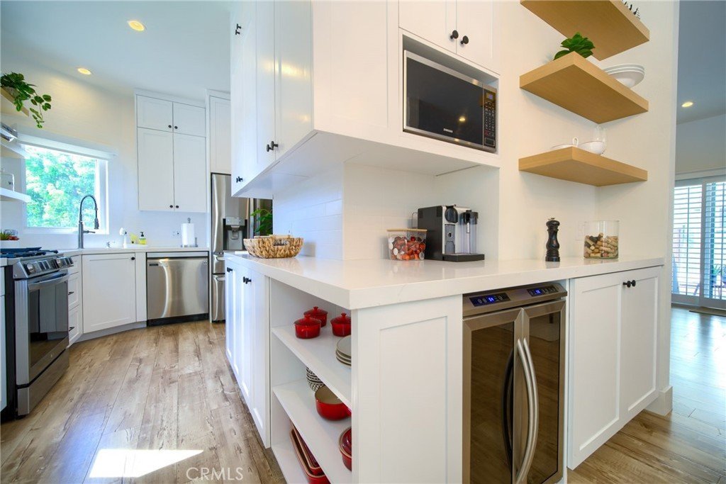 RARE DETACHED STUNNING 3 ON LOT FRONT TOWNHOME. EXTENSIVELY REMODELED THROUGHOUT WITH FINEST FINISHES. PRIMARY SUITE BOASTS HIGH VAULTED CEILING, FIREPLACE, SITTING AREA, CUSTOM CLOSET AND OPENS TO PRIVATE BALCONY WITH TREX DECKING. THE BATHROOM FEATURES LARGE SHOWER, QUARTZ MAKEUP VANITY, SEPARATE VANITY WITH DOUBLE SINKS AND STYLISH MIRROR. 2nd BEDROOM OFFERS HIGH VAULTED CEILING, CUSTOM CLOSET, PRIVATE AMAZING BATHROOM AND AIR JET TUB. A VERSATILE OFFICE/THIRD BEDROOM FEATURES STYLISH BARN DOORS, COMPLEMENTED BY A SPACIOUS DINING AREA. THE GOURMET KITCHEN EQUIPPED WITH QUARTZ COUNTER-TOPS, LG STAINLESS STEEL APPLIANCES, A POT FILLER, A BUILT-IN WINE COOLER, BEAUTIFUL CABINETRY AND A NEARBY 1/2 BATH. BEAUTIFUL PLANK FLOORING EXTENDS THROUGHOUT, THE HOME FEATURES CENTRAL A/C AND WATER FILTRATION SYSTEM. REPIPED WITH PEX, LARGE TWO-CAR GARAGE WITH DIRECT ENTRY, EPOXY FLOORING, AND A TESLA 220V CAR CHARGE. COMPLETELY DETACHED FROM THE OTHER TWO UNITS, THIS HOME FEATURES NO COMMOM WALLS! DON'T MISS THE OPPORTUNITY TO BE APPROXIMATELY 1.3 MILSES FROM THE SAND AND SUN IN MANHATTAN BEACH. THIS PROPERTY HAS IT ALL!!