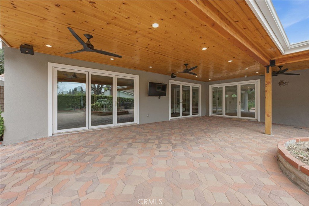 Meticulously remodeled home in prestigious Devonshire Country Estates, Northridge. Welcoming curb appeal leads into this smart energy efficient home with modern conveniences. Perfectly nestled on private cul-de- sac, only four homes in area, with an approximation of 20,000 square foot lot. This upscale newly remodeled property displays an open floor plan with a pool and an expansive yard for outdoor living. Remodeled with fine custom finishes abound this approximate 2600 sq. foot, 3 bed/3-1/2 bath masterpiece has engineered hardwood floors throughout. Each generous size bedroom includes custom built shelving/closets and the living area has customized entertainment system. Through the new installed accordion style patio doors, you can Lounge in the sun drenched private pool and enjoy a nice brunch at the custom made patio with remote controlled fans and is also prewired for an entertainment system. While outside enjoy the expansive manicured yard and loads of fruit trees. This smart home has state of the art recessed lighting, energy efficient quiet cool fan and fully paid solar panels. It makes a perfect home! Easy to show, come and discover more features!