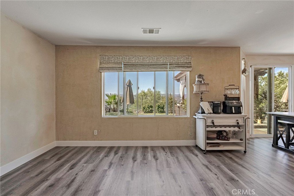 Step through the doors and instantly feel the warmth of this home’s Mediterranean soul—vaulted ceilings, Venetian plaster walls, and luxury waterproof wood flooring set the stage for everyday elegance. The open-concept kitchen is both stylish and functional, featuring quartz countertops, an oversized island with sink, recessed lighting, and a cozy breakfast nook framed by breathtaking 180° panoramic views of the Santa Clarita Valley.