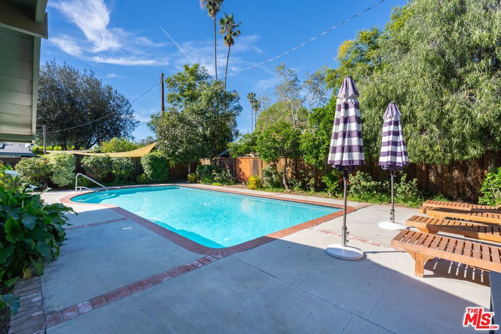 Located in the highly coveted Corbin Palms neighborhood of Woodland Hills, this Mid-Century Marvelous pool home was designed by renown Architects Dan Palmer & William Krisel and built by The Alexander Construction Company. Before Palmer & Krisel went on to design thousands of homes in Palm Springs forever influencing the cities modern look, they designed Corbin Palms right here in Woodland Hills. Brand New roof with warranty installed January 2026! This residence embodies clean lines, natural lighting with modern upgrades for the best of today's California living and entertaining. The moment you step through the dramatic double door entry you will be in awe of the vaulted ceilings and natural light cascading in from the double pane windows and skylights while showcasing the recently remodeled modern aesthetic. New drywall coating with interior paint, Tasteful engineered hardwood flooring and recessed lighting throughout the living spaces. Gorgeous kitchen featuring new soft close cabinetry with quartz countertops, floating shelves, spacious pantry, tile backsplash with LG and Samsung stainless steel appliances. Open, light and bright floorplan offers a formal living room with floor to ceiling tiled gas fireplace, large dining area and huge family room with dry bar and French Doors that seamlessly connect to the private backyard. New artificial turf, covered pergola and sparkling swimming pool will make you feel like you're on vacation every day. Designer inspired Primary suite opens to the outdoor living space and is both simple and luxurious with its neutral double sink vanity, Delta brushed brass hardware, tastefully tiled flooring and shower with frameless glass and freestanding soaking tub. Dual closets including a Custom walk-in modular closet system. Two additional bedrooms with engineered hardwood flooring, vaulted ceilings, skylights and Jack and Jill access to an updated bathroom. More new features include exterior paint, water heater, double front doors, Nest thermostat, recessed lighting, fixtures, electrical outlets, switches and pool filtration system. Walking distance to the new Haynes Street Greenway which features California Native vegetation and trees, a walking path, seating areas, perimeter fencing with a decorative entry gate and a security system. Conveniently located near restaurants, shopping, The Westfield Topanga Village, Warner Center, public transportation and more!