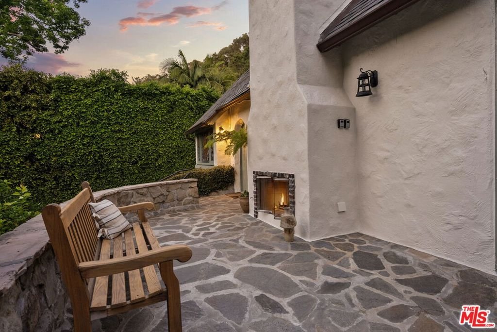 Nearly a century in the making, this enchanting 1928 retreat rests quietly within the storybook landscape of Rustic Canyon. The property has evolved with grace into a timeless English Tudor where every detail feels considered, a blend of craftsmanship, history, and warmth. Inside, soaring beamed cathedral ceilings create a sense of openness and light, while custom herringbone wood floors ground the space in quiet sophistication. Sunlight filters gently through colorful stained-glass windows, casting shifting patterns across the rooms throughout the day. Restored vintage lighting glows softly in the evenings, enhancing the home's intimate, almost cinematic ambiance. Each of the five en suite bedrooms offers its own distinct rhythm and personality, private & peaceful. At the very top, the primary suite feels like a retreat unto itself, bathed in natural light and surrounded by treetop views that stretch across the lush canyon landscape. On the lower level, the home reveals one of its most captivating chapters. Published as part of the original 1920s cabin, this space carries the spirit of another era. A dramatic refurbished screening lounge unfolds, leading to a hidden Prohibition-era speakeasy tucked behind secret doors- a playful and storied nod to the home's past as a gathering place for the Uplifters community. Outside, the grounds feel equally transportive. Mature greenery surrounds the home, creating a sense of privacy and calm, while the 54-foot saline pool and spa stretch elegantly across the landscape designed for long afternoons in the sun and quiet evenings under a verdant canopy. Incredible creative studio over 3-car garage. Gardening shed. Set within one of Los Angeles' most cherished and storied enclaves, this is more than a home... it's a rare and soulful retreat where history, artistry, and nature exist in effortless harmony.