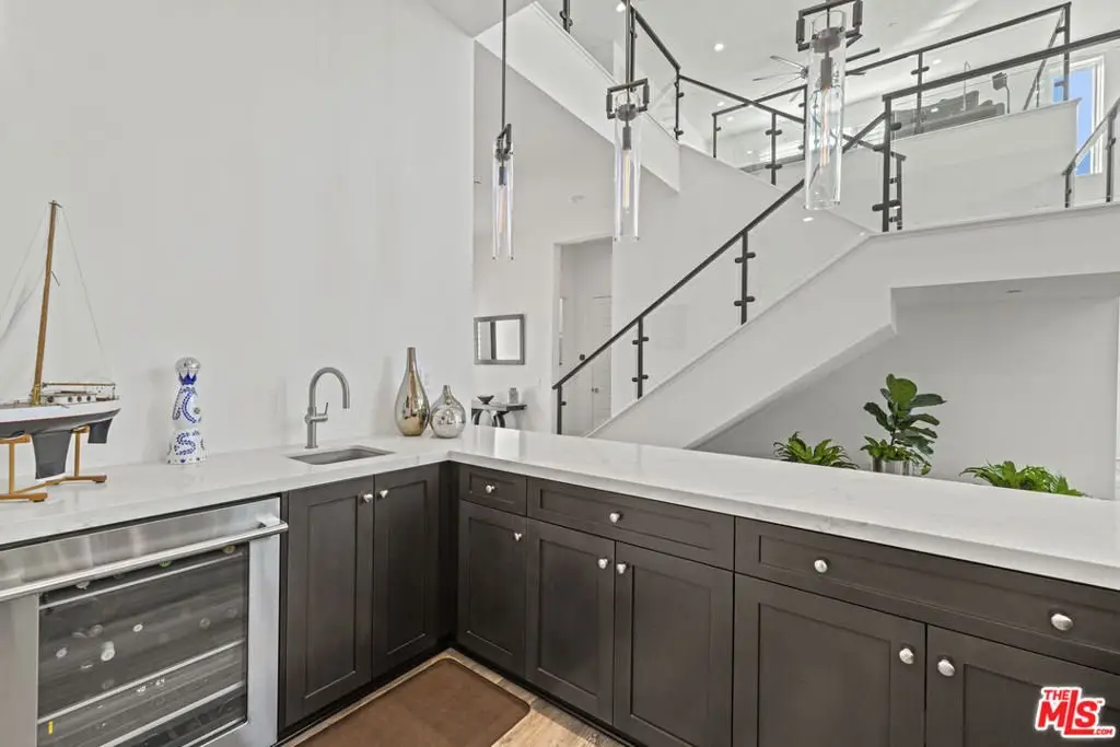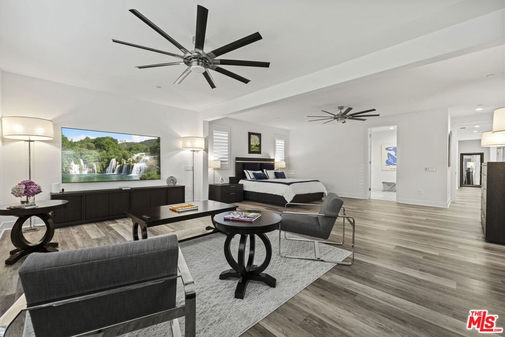 Stunning Ultra-Modern Estate in the exclusive 24-hour guard-gated community of Westcliffe in Porter Ranch Hills. Built in 2022 and situated on a coveted corner lot, this 5-bedroom, 6-bath estate with office, loft, and flex space showcases timeless upgrades, sleek design, and comes with custom designer lighting making it a true turnkey home.Upon entering through the majestic solid wood and glass front door, you're welcomed by soaring 24-foot ceilings and a bright, open floor plan that feels like a private oasis. Expansive windows and large stackable doors flood the Great Room and chef's kitchen with natural light, creating a seamless indoor-outdoor flow. The gourmet kitchen features designer appliances, a large stone island, quartz counters, and a full wet bar perfect for entertaining. The first level also offers a versatile office/media room, a flex space ideal for a gym, plus a guest bedroom and full bath.Upstairs, the luxurious Primary Suite serves as a retreat, complete with a spa-inspired bathroom featuring dual vanities, a rain shower, and spa-like soaking tub. Four additional bedrooms and a flexible loft complete the second floor. Designed for resort-style living, the entertainer's backyard is a true showpiece featuring a sparkling pool and spa, a dramatic water wall feature, fire pit, and a fully equipped outdoor kitchen with stainless-steel BBQ and a custom Taj Mahal stone island, perfect for serving cocktails or hosting al fresco dinners. Multiple lounging and dining areas, manicured landscaping, and a vegetable garden complete this private oasis.This estate is also equipped with a fully integrated smart home system and owned solar panels, combining modern luxury with energy efficiency. With a two-car garage, high-end finishes throughout, and the rare offering of a fully furnished turnkey lifestyle, this residence perfectly blends modern architecture with the best of California luxury living.Conveniently located near The Vineyards shopping center, Whole Foods, AMC, award-winning schools, and easy access to the 118 freeway, this is a rare opportunity to own one of Porter Ranch's most prestigious and breathtaking estates. Conveniently located near The Vineyards shopping center, Whole Foods, AMC, award-winning schools, and the 118 freeway, this is a rare opportunity to own one of Porter Ranch's most prestigious and breathtaking estates.