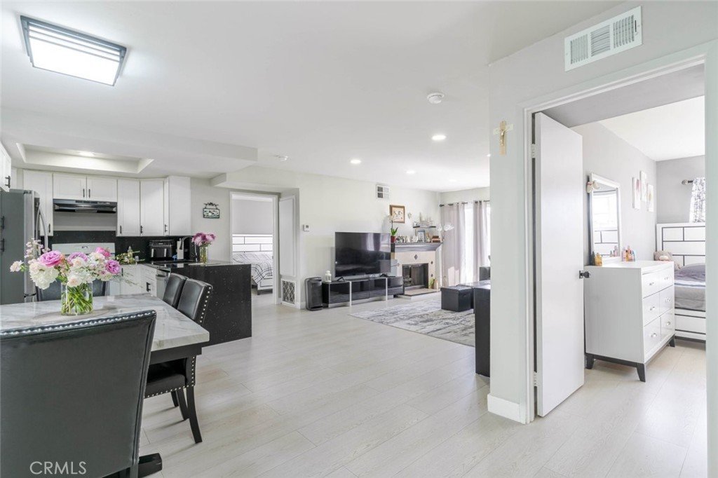 Enter into a thoughtfully remodeled kitchen featuring stylish finishes and updated cabinetry, complemented by upgraded flooring throughout the home. Both bathrooms have been tastefully renovated, creating a fresh and contemporary feel. Recessed lighting enhances the bright and inviting atmosphere, while the cozy fireplace adds warmth and charm to the living area.