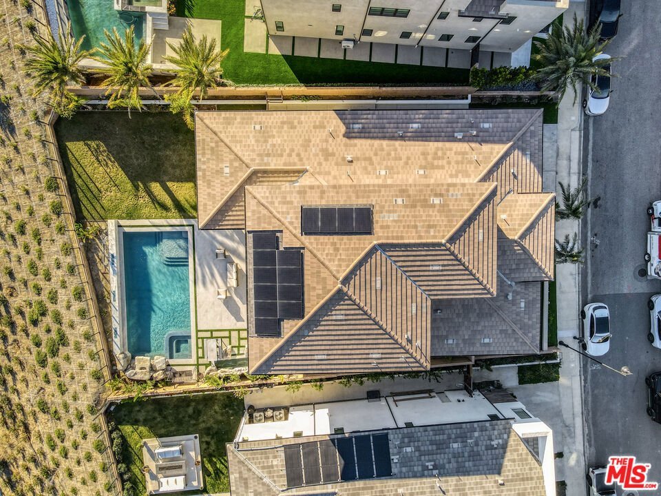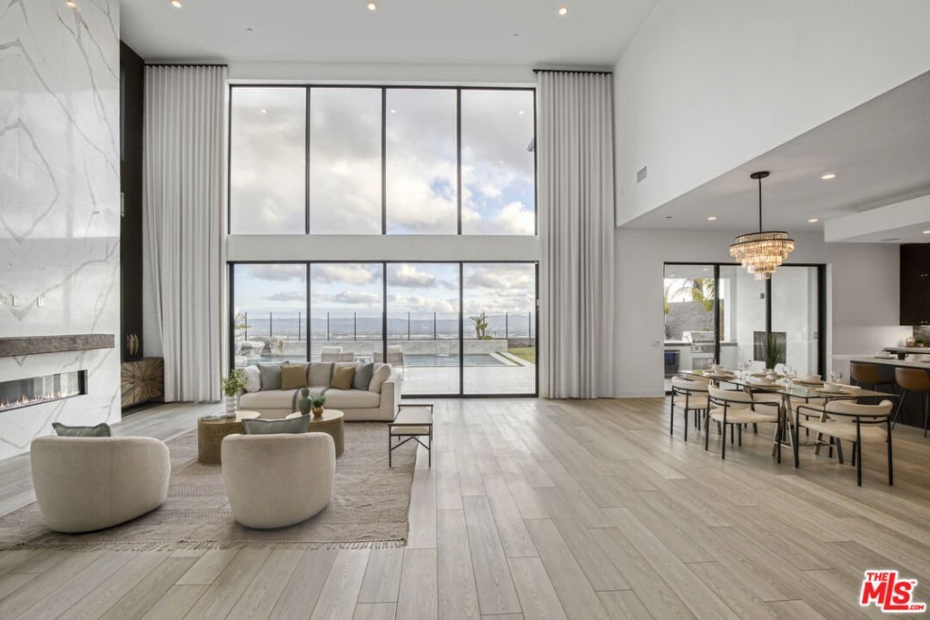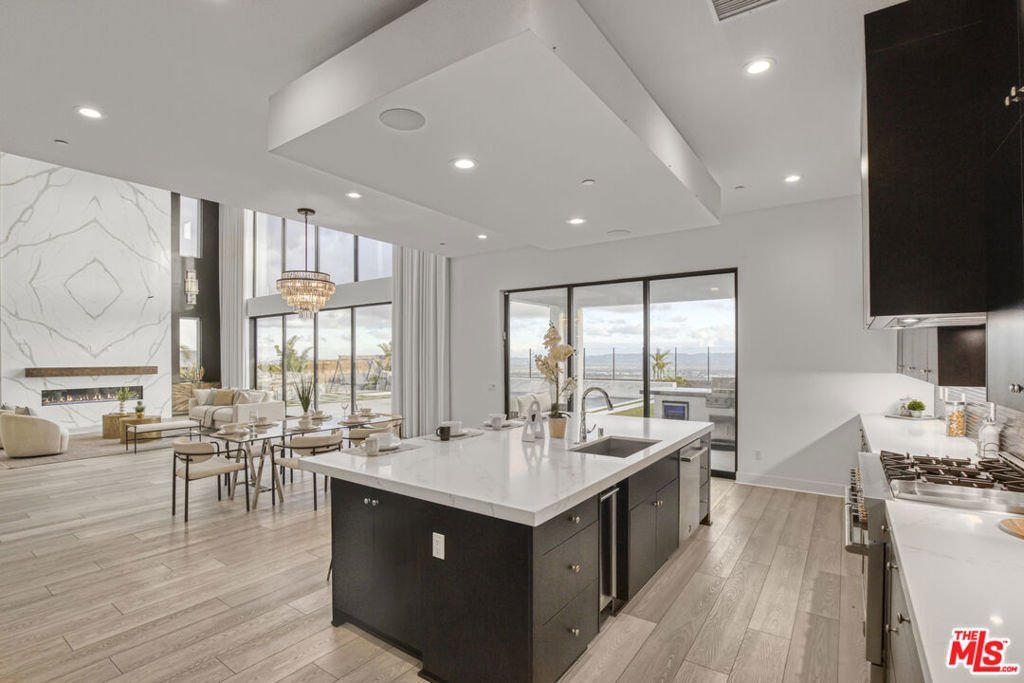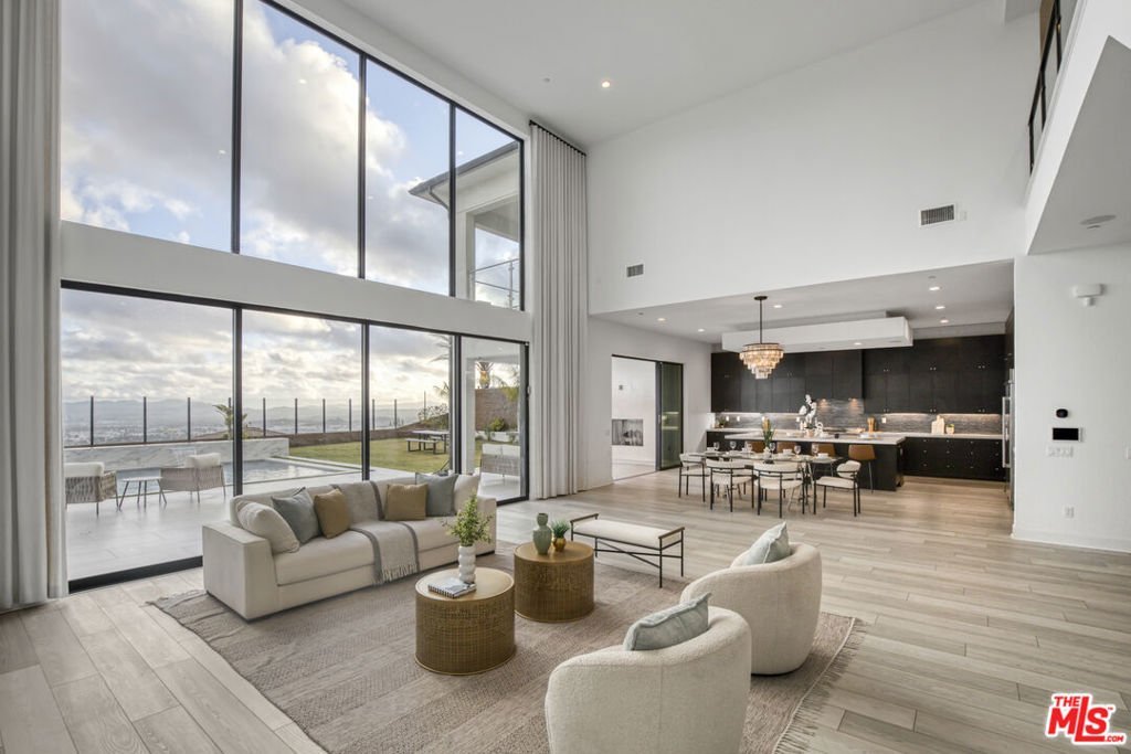 Situated in the prestigious guard-gated Westcliffe community of Porter Ranch Hills, this exceptional tri-level luxury estate offers a truly elevated living experience defined by sophistication, scale, and unforgettable views. Designed for both grand entertaining and everyday comfort, the home features a dramatic open-concept floor plan with soaring ceilings spanning all three levels and expansive stacking glass doors that seamlessly blend indoor and outdoor living. Enjoy breathtaking, full 360-degree unobstructed panoramic views of the city skyline, rolling hills, and surrounding mountains from nearly every vantage point. Refined finishes elevate the interiors, including premium flooring, custom cabinetry, designer lighting, and a show-stopping gourmet kitchen equipped with top-of-the-line appliances, an oversized island, and sleek quartz countertops ideal for both culinary creations and social gatherings. The luxurious primary suite is a private sanctuary, offering stunning vistas, a cozy patio with fireplace, and a spa-inspired bath designed for ultimate relaxation. Generously sized secondary bedrooms provide comfort and privacy, complemented by beautifully upgraded bathrooms throughout. Outdoors, the resort-style backyard invites you to unwind with a sparkling pool and spa set against a backdrop of endless views. The second-story loft creates the perfect cinematic lounge experience, while a dedicated gym and elegant office add functionality and balance. The expansive third level is an entertainer's dream, complete with its own private bathroom and stacking doors that open to a view balcony showcasing dazzling city lightsideal for unforgettable sunset gatherings. Owner-owned solar panels enhance energy efficiency and long-term savings. A rare opportunity to own one of the finest and most coveted view lots in all of Porter Ranch's most desirable communities