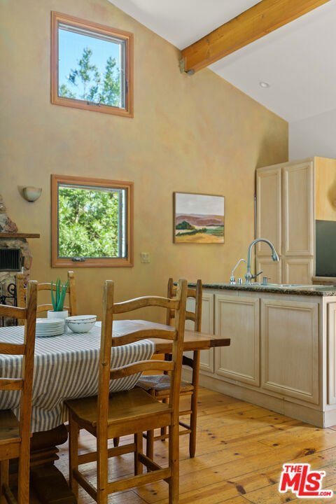 Nestled on a peaceful street off Old Topanga Canyon Road, this light-filled 4-bedroom, 2-bath home is a soulful retreat surrounded by nature and full of rustic charm. A separate 1-bedroom, 1-bath guest unit adds flexibility, ideal for visitors, creative space, or potential rental income. High ceilings, expansive windows, and soft natural light throughout create a warm, open atmosphere that embraces the spirit of canyon living. The main living and dining areas offer a comfortable flow, leading into a clean, functional kitchen that's ready for your personal touch. Natural materials and organic tones carry throughout the home, bringing a sense of calm and connection to the outdoors. Each of the four bedrooms feels bright and serene, with the primary suite opening to a private patio perfect for quiet mornings or stargazing nights. Surrounded by mature trees and multiple outdoor living areas, this property offers peaceful seclusion just minutes from hiking trails, the heart of Topanga village, and the coast.