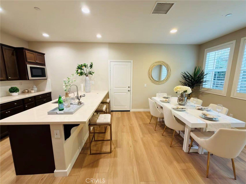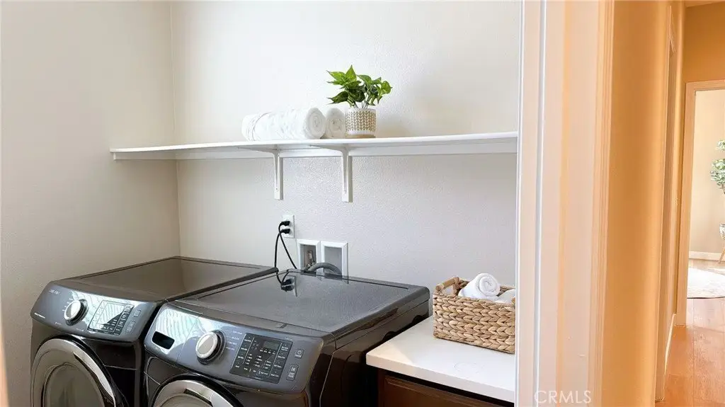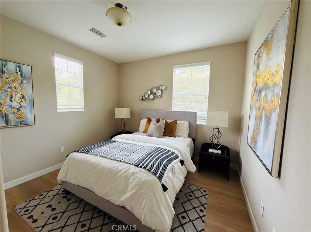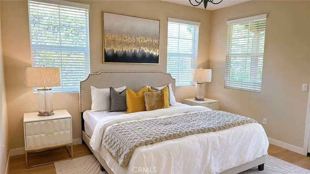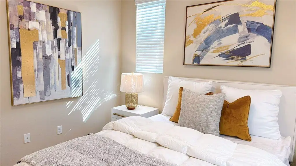 This stunning residence is situated in a picturesque and peaceful neighborhood, featuring 3 bedrooms, 2.5 bathrooms, and a spacious loft on the second floor. New interior paint, brand-new flooring, new toilets, and new showerheads! The kitchen is equipped with quartz countertop cabinets and furnished with stainless steel appliances—including a gas range, microwave, dishwasher, refrigerator, washer, and dryer. The master bedroom offers a generous walk-in closet, while the master bathroom includes dual sinks, a shower, and a bathtub. Both the master bedroom and loft open to a balcony overlooking the beautiful community area. The home includes a two-car garage, washer and dryer hookups on the second floor, and a tankless water heater in the garage—offering both comfort and convenience.