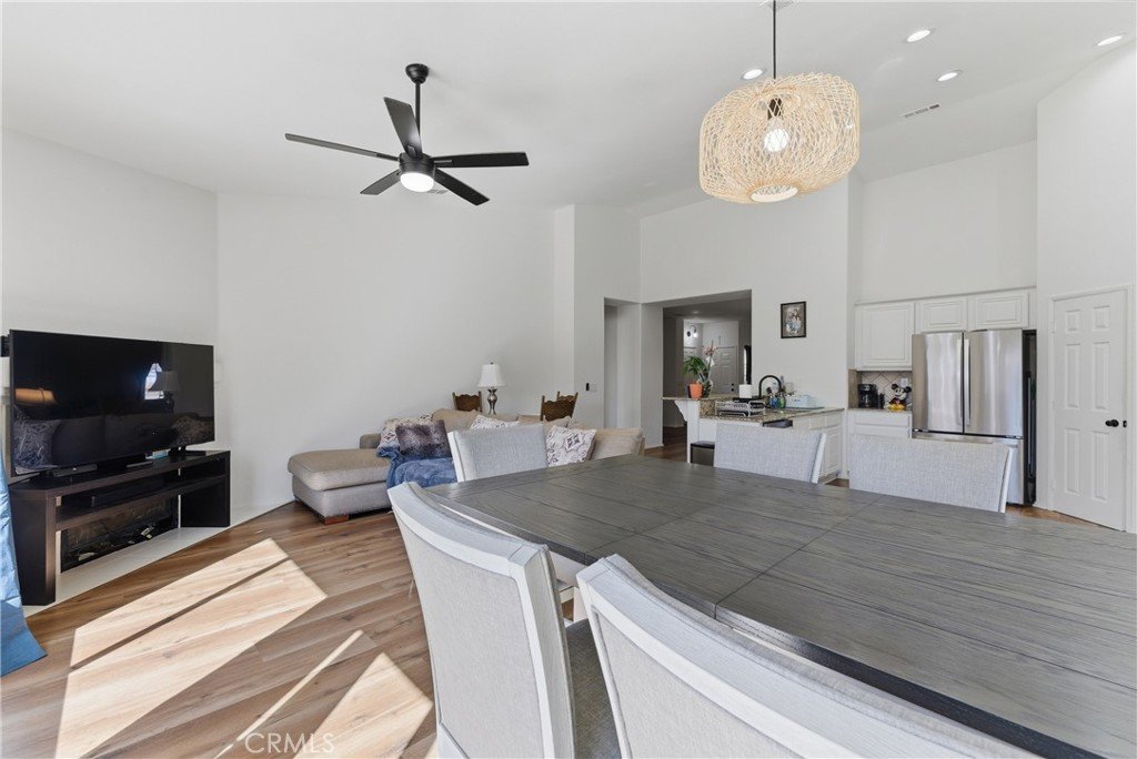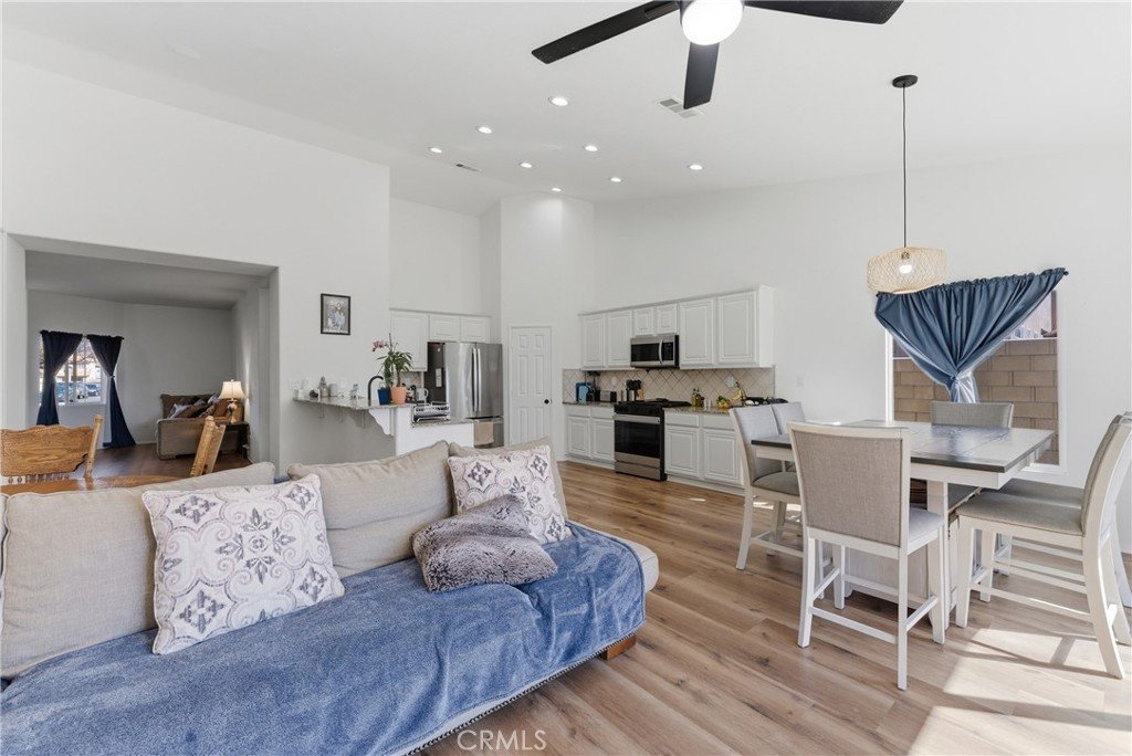 Inside the home features new wood laminate flooring throughout the main living areas and plush new carpet in the bedrooms. The unique floor plan offers high ceilings and a desirable layout with bedrooms thoughtfully positioned on opposite sides of the home for added privacy. The kitchen is designed for both style and function, showcasing new Samsung stainless steel appliances including a gas range, microwave, and dishwasher. Granite countertops, freshly painted cabinetry, a large pantry, recessed LED lighting, and a breakfast bar complete the space, which opens seamlessly to the family room—perfect for entertaining.Natural light fills the home, highlighting the spacious layout and quality finishes. Three of the four bedrooms feature walk-in closets, while the oversized primary suite includes a large walk-in closet and a beautifully updated en-suite bathroom with dual sinks and elegant tile work. Additional highlights include a durable tile roof and a fully enclosed backyard with block walls, offering a blank canvas ready for your landscaping vision. This move-in ready home truly defines turnkey living. Don’t miss the opportunity to make it yours.