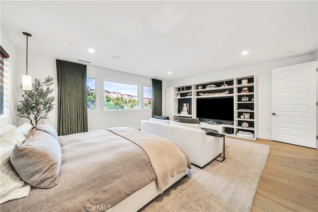 OVER $100,000 price cut! This luxurious residence sits on nearly 19,000 square feet, one of the largest lots available. Showcasing meticulously landscaped grounds with a grand driveway and a charming walkway lined with expensive age-old olive trees. Located behind the gates in the prestigious Westcliffe community, a guard gated enclave in the upscale Los Angeles suburb of Porter Ranch. This Vega floor plan- Cascades Collection is 4,932 square feet of living space, and it's no surprise that this layout is a favorite among many. As you enter, you’ll be captivated by the dramatic floating piano-black staircase, expansive 11-inch white oak flooring, and soaring ceilings that create an inviting atmosphere. This home offers five spacious bedrooms and five bathrooms, including a generous en-suite bedroom on the first floor with a retreat area. An elegant executive-style office, complete with double glass doors, provides an ideal executive workspace. The heart of the home is the state-of-the-art Elmar Cucine kitchen, known for its exquisite Italian craftsmanship. Featuring clay-finished and matte lacquer cabinets, a striking 20-foot custom porcelain island, and high-end Thermador appliances. Flush sliding pocket doors and floor-to-ceiling windows enhance the open-concept layout, allowing natural light to flood the space. Enter the living area to find breathtaking 72 inch open shelving fireplace with custom floor-to-ceiling wall treatment. Ascend to the second floor to discover the expansive master suite, complete with dual vanities, a walk-in shower, and a luxurious freestanding soaking tub set against Italian oak finished vanity with white quartz countertops. Four additional bedrooms and three bathrooms with a loft area featuring custom built-ins serving as movie room. Step outside to your private backyard oasis, featuring a pebble Fina pool and spa, two fire pits, an oversized recessed patio lounge, a BBQ center, tranquil waterfall feature and outdoor pool shower. Smart home with an integrated sound system, sonos speakers for seamless backyard entertaining, and OWNED SOLAR PANELS. This incredible home offers the ultimate blend of luxury and comfort in a sought-after community.