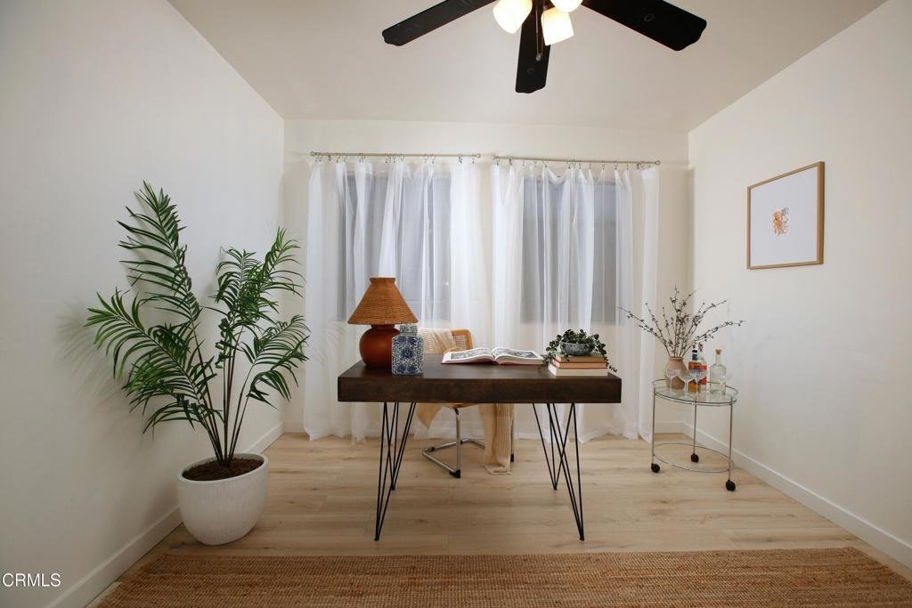 Located just moments from Occidental College and Eagle Rock's vibrant cafes and shops, this charming traditional home offers a rare sense of suburban calm within the city. Set above the street, a quaint front porch welcomes you inside, where large living room windows fill the space with natural light and frame views of the surrounding hills. The kitchen features a cozy breakfast nook and a separate laundry room, with a sliding door that opens to a sweet back deck--perfect for morning coffee or casual dining. The front bedroom enjoys direct access to the full hall bath, while a second, centrally located bedroom offers flexibility as a guest room or home office. At the rear of the home, the spacious primary suite provides a peaceful retreat, complete with a bright picture window, full bath, and generous closet with dressing area. Outside, the large lush backyard is designed for both relaxation and entertaining, with mature shade trees, a large patio, and a low-maintenance turf area. An extended driveway and detached one-car garage offer ample parking and potential for a future ADU. The house has been lovingly maintained by its owners for the past 38 years, and recent updates include a full interior and exterior repaint along with new flooring throughout, giving the home a fresh, move-in-ready feel. A perfect blend of character, comfort, and location--this is Eagle Rock living at its best.