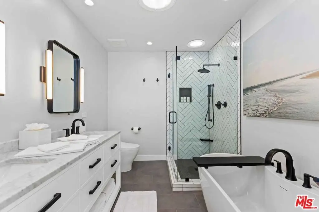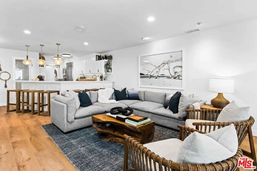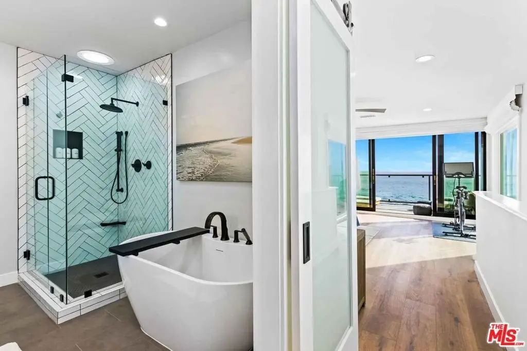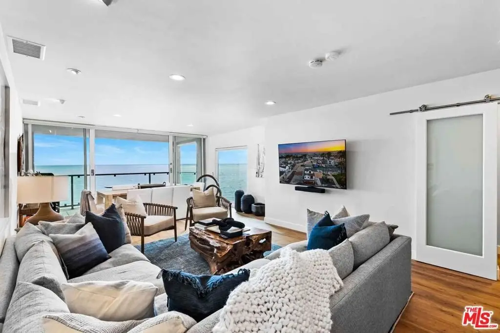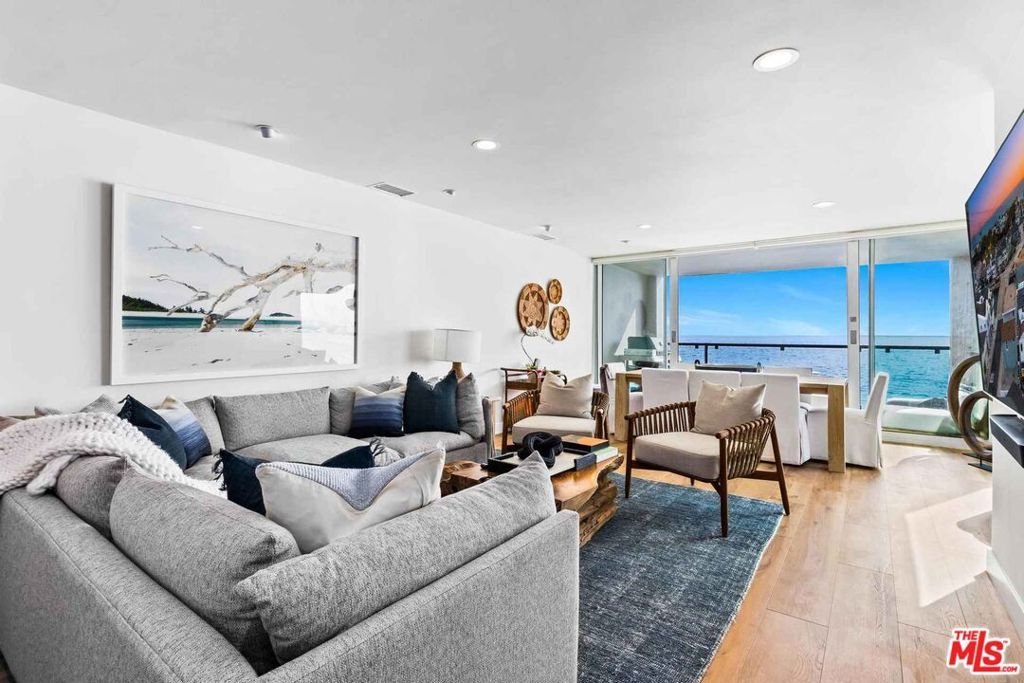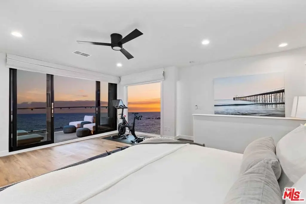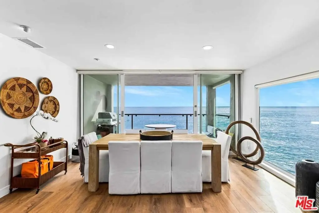 New co-ownership opportunity: Own one-eighth of this turnkey home, professionally managed by Pacaso. Named for the beach just steps away, Las Flores is a perfect oceanfront hideaway, with stunning views of the sparkling Pacific, islands and Queen's Necklace. This two-story contemporary has decks on both levels and private steps leading to the shore. Inside, the open concept layout is all about endless vistas, relaxation and entertaining. The first floor has floor-to-ceiling, wall-to-wall glass sliders plus a picture window, framing views to enjoy the living and dining area as well as the gourmet kitchen. The doors open to a covered balcony perfect for al fresco dining. The kitchen features Caesarstone countertops, high-end stainless steel appliances, a beverage fridge and bar seating. Behind the kitchen is a handy laundry area and a full bathroom is nearby. One of two staircases leads directly to the primary suite, which features a fireplace, a beachfront balcony and a spa-style en suite bathroom with a soaking tub, tiled shower and dual-sink vanity. The other stairway goes to a landing with doors to a private patio. Also on this level are a guest bedroom and bathroom, and a family room/office which is also accessible from the primary suite. This getaway is midway between Malibu and Santa Monica, and close to Duke's Malibu, Nobu and shopping. The home, which has a two-car garage with a second refrigerator, comes fully furnished and professionally decorate