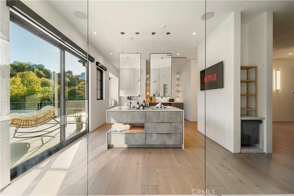 24 HOUR GUARD GATED COMMUNITY, HUGE LOT, LUXURY MANSION 7 BEDROOMS,10 BATHROOMS, DETACHED GUESTHOUSE, FULL SIZE NBA SIZE SPORT COURT. 2023 REBUILD, STUNNING LUXURY MANSION SOUTH OF VENTURA (24 HOUR ARMED GUARD GATED COMMUNITY), WESTCHESTER COUNTY home to just 160 residences, this showcase estate redefines modern luxury. Set on nearly one acre and completely reimagined down to the studs in 2023 with over $3 million in recent upgrades, this 10,000+ sq. ft. masterpiece offers an unmatched level of privacy, sophistication, and cutting-edge design.cathedral ceilings, Custom Designer Chandeliers, dramatic floor-to-ceiling marble fireplaces, and seamless indoor-outdoor living with automatic pocket doors and Lutron smart home automation controlling lights, shades, TV’s and premium sound (interior/Exterior) throughout. The residence boasts a state-of-the-art security system with interior/exterior cameras, a Control4 system, and a fully soundproof oversized home theater with, Premium Sound Package, massive Upgraded Projector Screen, and a walkout enclosed patio. The chef’s dream kitchen showcases Two 12-foot waterfall islands, a walk-in pantry, 2 Dishwashers, full-size refrigerator & freezer, high-end appliances, and a custom wine display. Upstairs, you’ll find 5 en-suite bedrooms, each with custom cabinetry and walk-in closets. The primary suite impresses with Custom Fireplace, Sitting Area, 2 oversize walk-in Closets 1 that has its own ELEVATOR an Oversize Spa like bathroom with Huge Rainfall Shower, Separate Tub, Vanity Area, and Walk-out balcony overlooking park like grounds. The amenities continue with two laundry rooms, a 3 car garage with metallic epoxy floors, and a massive loft space ideal for a gym, office, or playroom. Outdoor living rivals a resort with designer Lighting, landscaping, multiple entertaining patios, outdoor grill, cabana, custom glass pool fence, GLASS SPA, putting green, and full-size NCAA sport court. Outdoor Shower, A detached guest house,A Main Level En-Suite Bedroom perfect for guests. The Ideal Floorplan. This estate offers the perfect blend of modern technology, refined elegance, and resort-style luxury in one of the most coveted gated communities south of Ventura WESTCHESTER ESTATES, Patrolling armed Guard, Street Surveillance. dream home and one of the Safest Neighborhoods in LA for the most discerning buyer. Minutes to the 101, Target, Costco, Topanga Village, Fine Dining, Shops and Restaurants.