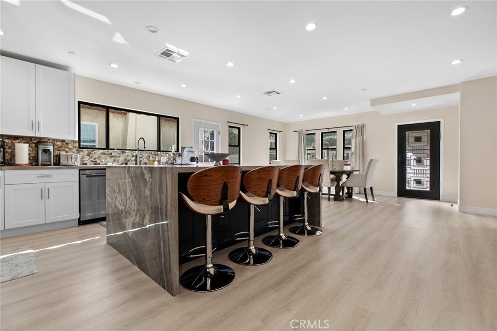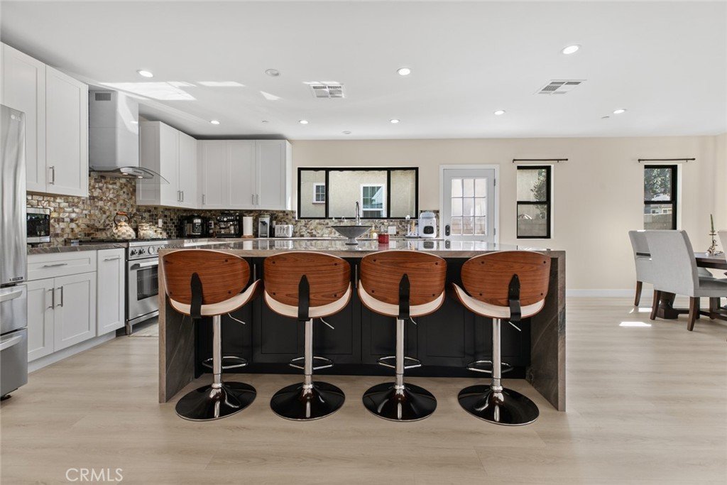 Located in Glenoaks Canyon, this stunning 1929 Tudor home has been completely remodeled and updated and is just perfect for those who appreciate the perfect blend of classic style and modern convenience. The beautiful entry door leads into a spacious open floor plan filled with an abundance of natural light and a lovely marble fireplace. The gorgeous eat-in kitchen includes an exquisite granite waterfall island, amazing tile backsplash, and brand new appliances including a wine refrigerator. The full bathrooms are truly aa oasis, featuring floating vanities, luxurious glass enclosed showers and the master suite bathroom includes a wonderfully deep soaking tub. The charming backyard includes a large covered patio with recessed lighting making it perfect for family gatherings. As a fabulous bonus, the garage has been converted to a permitted, 734sqft, 1bd, 1ba ADU with all new appliances, including a washer and dryer. There is also a finished attic with an additions 490sqft that can be used as a bonus area. Just minutes from top-rated Glendale schools, shopping, golf courses, and transportation. All additions and construction has been done with permits except the attice. Seller will provide buyer with all of the architectural plans and permits.