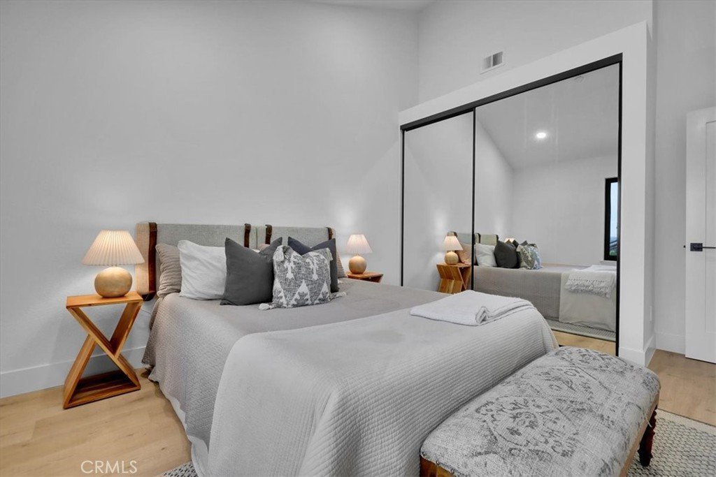 Situated on a spacious lot within a quiet cul-de-sac, this thoughtfully updated residence blends elevated curb appeal with cohesive design. Slightly set above street level, the home makes a strong first impression with a brick-accented driveway and walkway that complement the Spanish tile roof and freshly painted white exterior with contrasting black trim. Manicured landscaping, turf areas, and two usable side yards frame the property, while a prepaid solar lease through 2030 adds long-term efficiency. Double entry doors open to soaring ceilings and a spiral staircase that immediately establish scale. Light wood flooring and recessed lighting unify the main living spaces, where a formal living and dining area sit just off the entry, anchored by a statement chandelier and an open, connected layout. The fully remodeled kitchen flows naturally into a breakfast nook and a secondary living room featuring a fireplace and wet bar. New windows throughout invite abundant natural light, and sliding doors extend the living space outdoors. A half bathroom with a smart toilet and a dedicated laundry room with direct garage access complete the main level. Upstairs, the expansive primary suite offers a true retreat with dual closets and a generously sized en-suite bathroom featuring dual vanities and an oversized walk-in shower with an integrated soaking tub. Three additional well-proportioned bedrooms share a fully updated bathroom. Nearly every interior element has been modernized, from bathrooms and fixtures to windows and smart features, reinforcing the home’s cohesive renovation. An attic space accessed via pull-down ladder provides an additional bonus area for flexible use. Outdoors, the backyard continues the home’s balance of function and lifestyle, centered around a pool and spa. Two side yards add further versatility, while the epoxy-finished garage completes the property’s polished presentation. Designed with both scale and livability in mind, this residence delivers a fully updated interior, purposeful layout, and seamless indoor-outdoor flow in the well-established Walnut neighborhood.