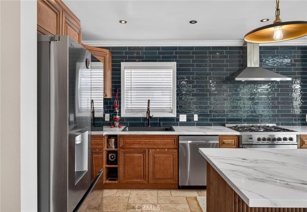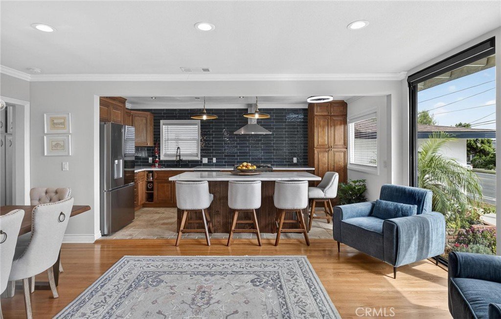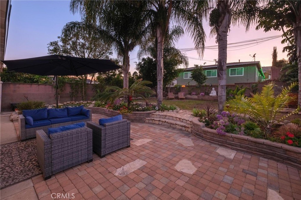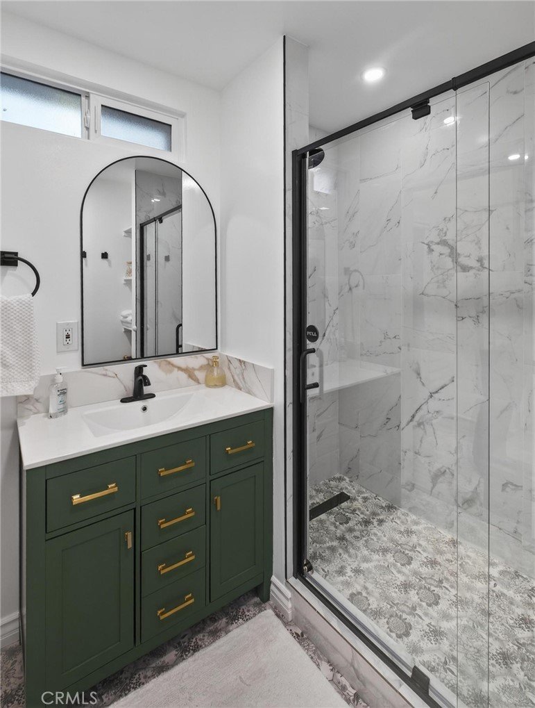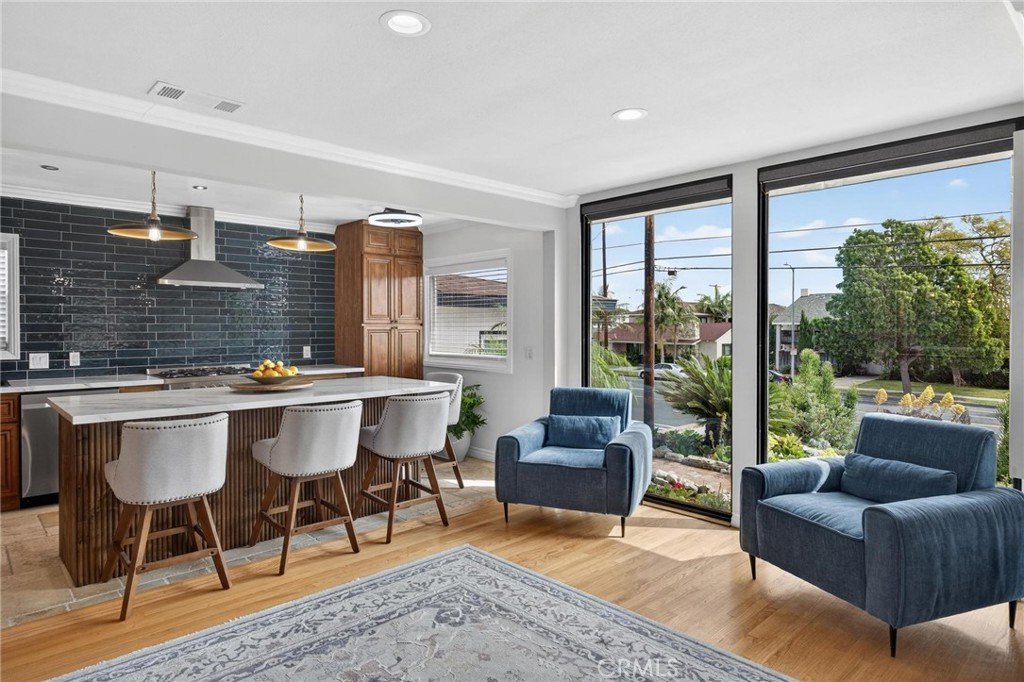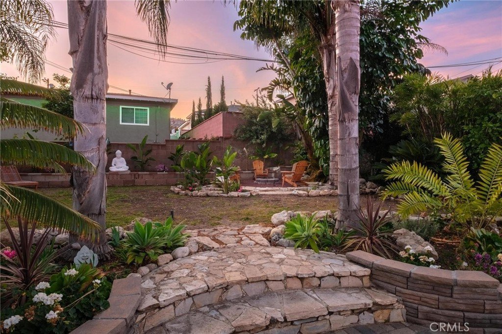 This is a beautiful 4-bedroom 3 bath home. This exceptional property is registered with the LA Home-Sharing Ordinance for the private rental unit and is perfect for owners seeking additional income or multi-generational living. The main living quarters is 3 bedroom 2 bath with a beautiful open-concept living, kitchen and dining combination with a wood burning fireplace, recessed lighting, hardwood flooring, central air and heat and natural light from commercial-grade front windows with custom remote-controlled blackout blinds. The upgraded kitchen includes a 90 x 42 quartz island with built-in outlets, custom drawers, quartz countertops, granite kitchen sink, travertine flooring, new five-burner Cosmo stove, LG microwave, new InstaView refrigerator and dishwasher. The laundry room has a new LG washer and dryer. The bright primary bedroom suite and two secondary bedrooms all continue with the hardwood flooring and have ceiling fans. The main living space bathroom is beautiful with a custom mirror, recessed lighting, travertine floors and shower walls, a bathtub and new fixtures. The primary bedroom suite includes a private bathroom with a custom mirror, travertine shower, and new fixtures. The unit/mother-in-law quarters (1-bed 1 bath) has a private separate entrance through the garage or an outside gate. It has a large bedroom, big windows and a large closet. The living, dining, and kitchen area is combined in a open layout with a gas fireplace. There are all new appliances, quartz countertop, oversized granite sink, dishwasher, gas range, microwave, garbage disposal and Bosch refrigerator. The unit also has high-end stackable washer and dryer laundry closet. The brand-new bathroom features a modern tile shower, a vanity with a mirror and new faucet, plus ample storage. This property is NOT in the rent control area of Los Angeles so it is allowed to rent a part of the owner’s primary residence for short term rentals and is registered with the city to be rented on Airbnb, VRBO, etc. The rental income is averaging two weeks per month generating on $2,000 per month. It would also make a beautiful space for a family member to enjoy. The inviting backyard has custom stone work, paver patio, and the fire pit seating area. The backyard boasts several beautifully landscaped garden areas, with plenty of space and potential for a future pool, surrounded by beautiful palm trees and birds of paradise.
