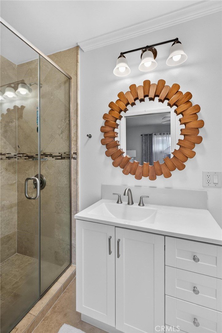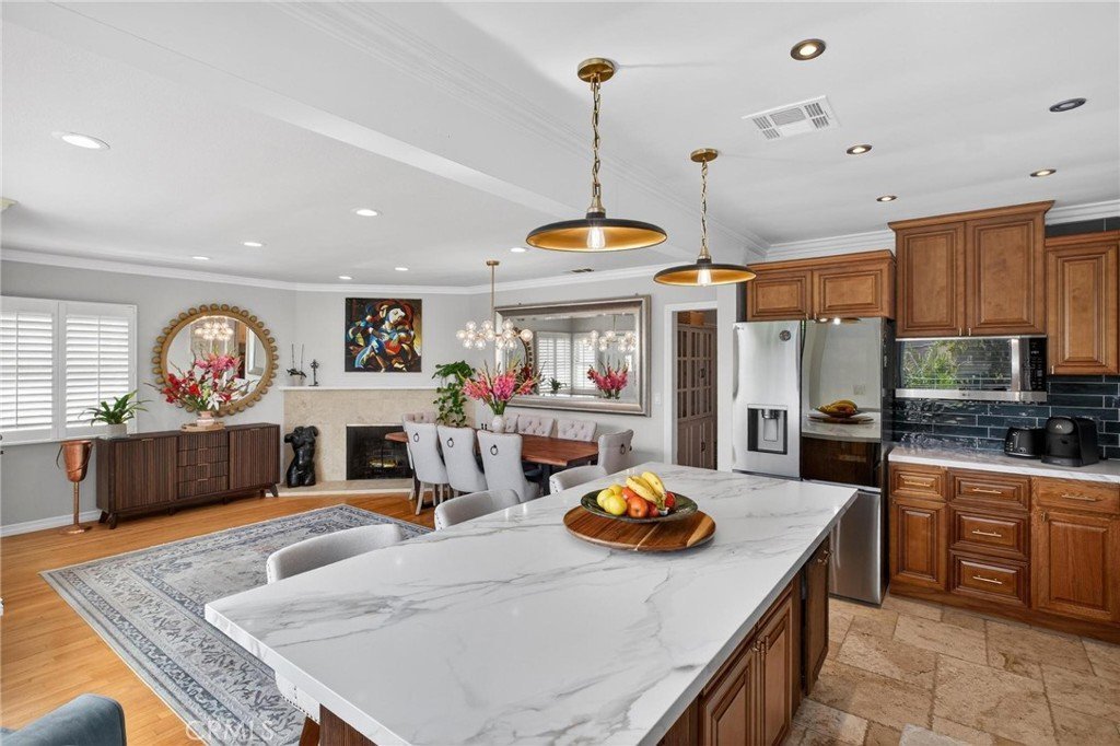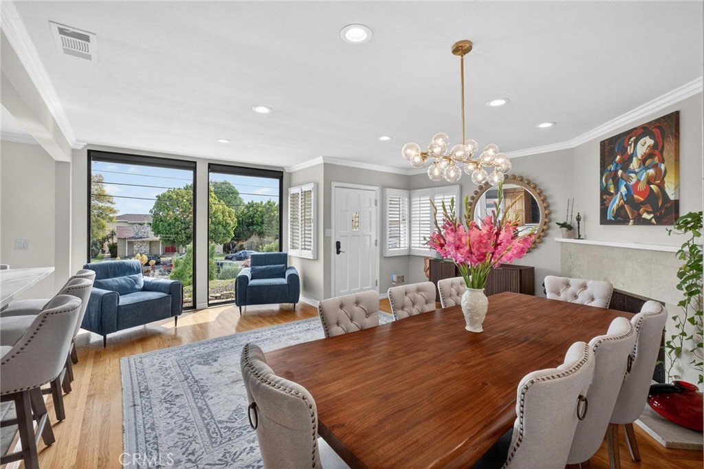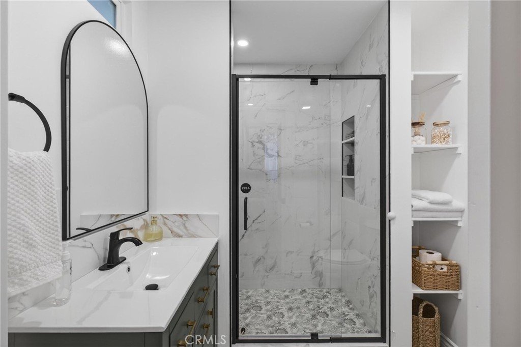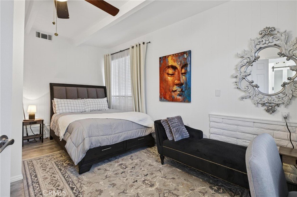 This is a beautiful 4-bedroom 3 bath home. This exceptional property is registered with the LA Home-Sharing Ordinance for the private rental unit and is perfect for owners seeking additional income or multi-generational living. The main living quarters is 3 bedroom 2 bath with a beautiful open-concept living, kitchen and dining combination with a wood burning fireplace, recessed lighting, hardwood flooring, central air and heat and natural light from commercial-grade front windows with custom remote-controlled blackout blinds. The upgraded kitchen includes a 90 x 42 quartz island with built-in outlets, custom drawers, quartz countertops, granite kitchen sink, travertine flooring, new five-burner Cosmo stove, LG microwave, new InstaView refrigerator and dishwasher. The laundry room has a new LG washer and dryer. The bright primary bedroom suite and two secondary bedrooms all continue with the hardwood flooring and have ceiling fans. The main living space bathroom is beautiful with a custom mirror, recessed lighting, travertine floors and shower walls, a bathtub and new fixtures. The primary bedroom suite includes a private bathroom with a custom mirror, travertine shower, and new fixtures. The unit/mother-in-law quarters (1-bed 1 bath) has a private separate entrance through the garage or an outside gate. It has a large bedroom, big windows and a large closet. The living, dining, and kitchen area is combined in a open layout with a gas fireplace. There are all new appliances, quartz countertop, oversized granite sink, dishwasher, gas range, microwave, garbage disposal and Bosch refrigerator. The unit also has high-end stackable washer and dryer laundry closet. The brand-new bathroom features a modern tile shower, a vanity with a mirror and new faucet, plus ample storage. This property is NOT in the rent control area of Los Angeles so it is allowed to rent a part of the owner’s primary residence for short term rentals and is registered with the city to be rented on Airbnb, VRBO, etc. The rental income is averaging two weeks per month generating on $2,000 per month. It would also make a beautiful space for a family member to enjoy. The inviting backyard has custom stone work, paver patio, and the fire pit seating area. The backyard boasts several beautifully landscaped garden areas, with plenty of space and potential for a future pool, surrounded by beautiful palm trees and birds of paradise.