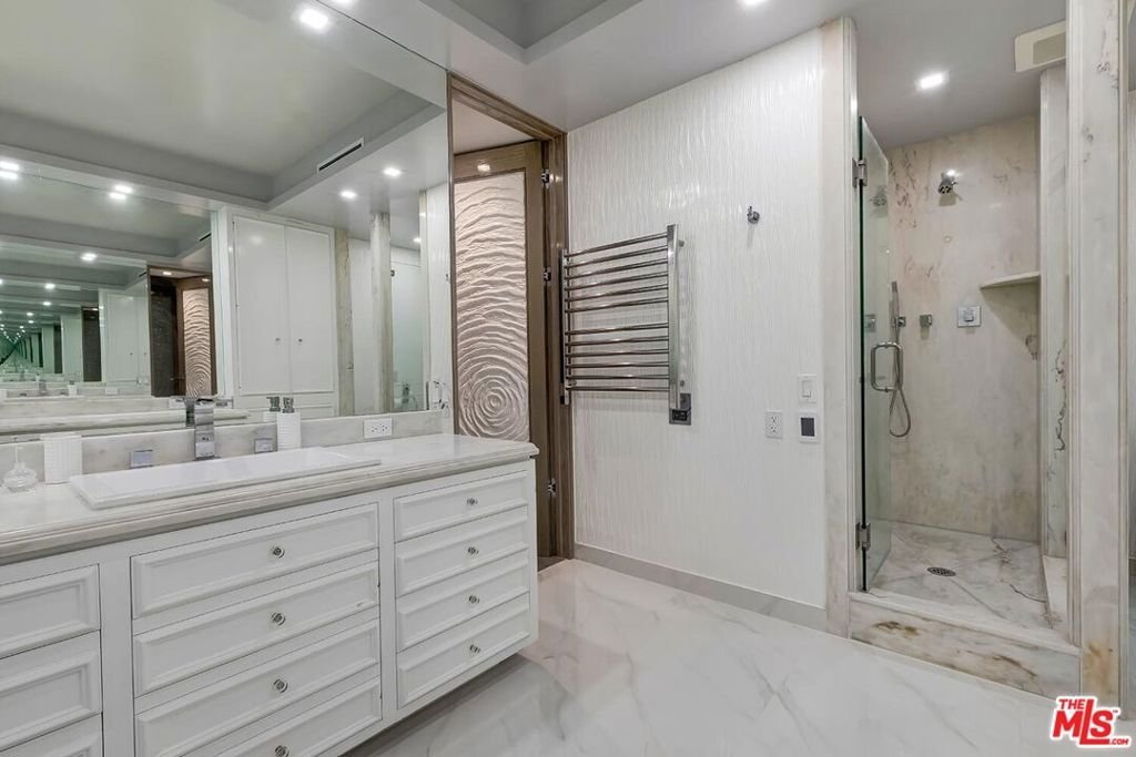 A custom renovation over 3 years has just been completed on the best Penthouse unit in this coveted full-service building on a most prime quiet western Beverly Hills road proximate to the best of BH and the Westside. The sunlit SE corner location affords breathtaking views of the city beyond from most every room. Open concept floor plan with phenomenal kitchen, central entertainment bar, and a great room with fantastic living and dining areas. A large view balcony is accessed from the Great Room. Enormous primary suite with large sitting room, 2 luxurious baths, and a huge walk-in fitted with an exclusive Natuzzi closet design. Secondary suite can be a flex space or office and has custom built-in Murphy bunk beds and beautiful southern views. Amazing custom-designed woodwork and fine materials utilized throughout in the creation of this masterpiece. Fabulous elegant building features 24 hour valet, concierge, security, gym, pool/spa, extra storage. If you demand an extraordinary living environment, we welcome you home.