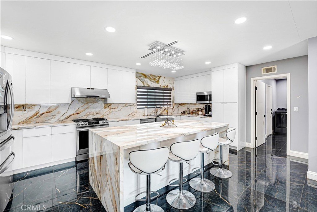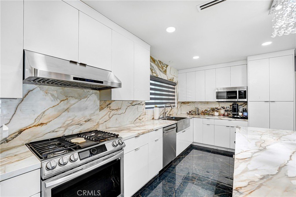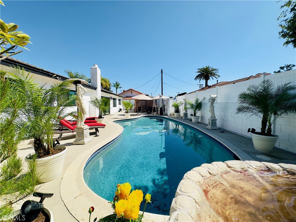 A rare opportunity in a prime Chatsworth location, this stunning, fully reimagined residence perfectly blends modern design with everyday functionality. With hundreds of thousands invested in high-quality renovations, the home has been thoughtfully transformed from top to bottom. Offering 6 bedrooms and 3 full bathrooms, the spacious layout is enhanced by soaring 9’ ceilings and a bright, open feel throughout. From the moment you enter through the double doors, the attention to detail is evident, including brand-new copper plumbing, updated electrical, new drywall, fresh insulation, recessed lighting and refined finishes throughout. The beautifully redesigned kitchen features abundant cabinetry and a massive center island, truly a dream for any home chef. The bathrooms showcase high-end materials, including elegant porcelain tile that blends style with durability. A designer living room anchored by a sleek fireplace creates the perfect setting for both entertaining and relaxed evenings at home. Two bedrooms and a full bath are privately situated on one wing of the home, offering flexible living arrangements. In addition, two bonus rooms with closets bring the total to eight possible bedrooms, ideal for extended family, guests, workspace, or potential income opportunities. Step outside to your private backyard retreat featuring a sparkling pool and pergola-covered lounge area, perfect for hosting gatherings or enjoying Southern California living. Positioned on a desirable corner lot, the property also offers subtle mountain views that enhance its peaceful setting. Conveniently located near parks, shopping, dining, commuter routes, and well-regarded public schools, this move-in-ready home combines comfort, versatility, and quality craftsmanship in one exceptional offering.