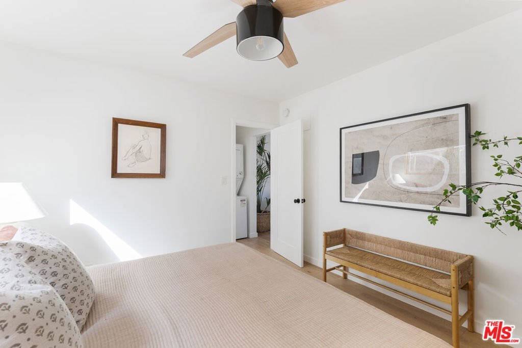 Tucked into a stylish mid-century modern building in the heart of Echo Park, this 1BD/1BA residence offers the kind of city living that's equal parts design and ease, where your mornings start with peek-a-boo city views and your afternoons end lounging poolside. White oak floors and a beautifully appointed kitchen set a warm, inviting tone, featuring butcher block counters, open shelving, brass hardware, and crisp white micro tile backsplashes. No detail was overlooked. The generously sized bedroom offers ample closet space with double closets and floor-to-ceiling built-in shelving, while the bath features a deep soaking tub and patterned tile floors. Outside, a gated entry welcomes you home and the magical pool area delivers serious Palm Springs vibes, bordered by white brick, redwood lounge decks, and lush landscaping. Practical conveniences round out the package: mini-split AC, in-unit laundry, and off-street parking with dedicated storage. Located just a few blocks from Sunset Boulevard, you'll have Echo Park favorites like Levant Bakery, Canyon Coffee, Bacetti, and Bar Flores practically at your doorstep. A rare combination of location, design, and comfort, this is Echo Park living at its best.