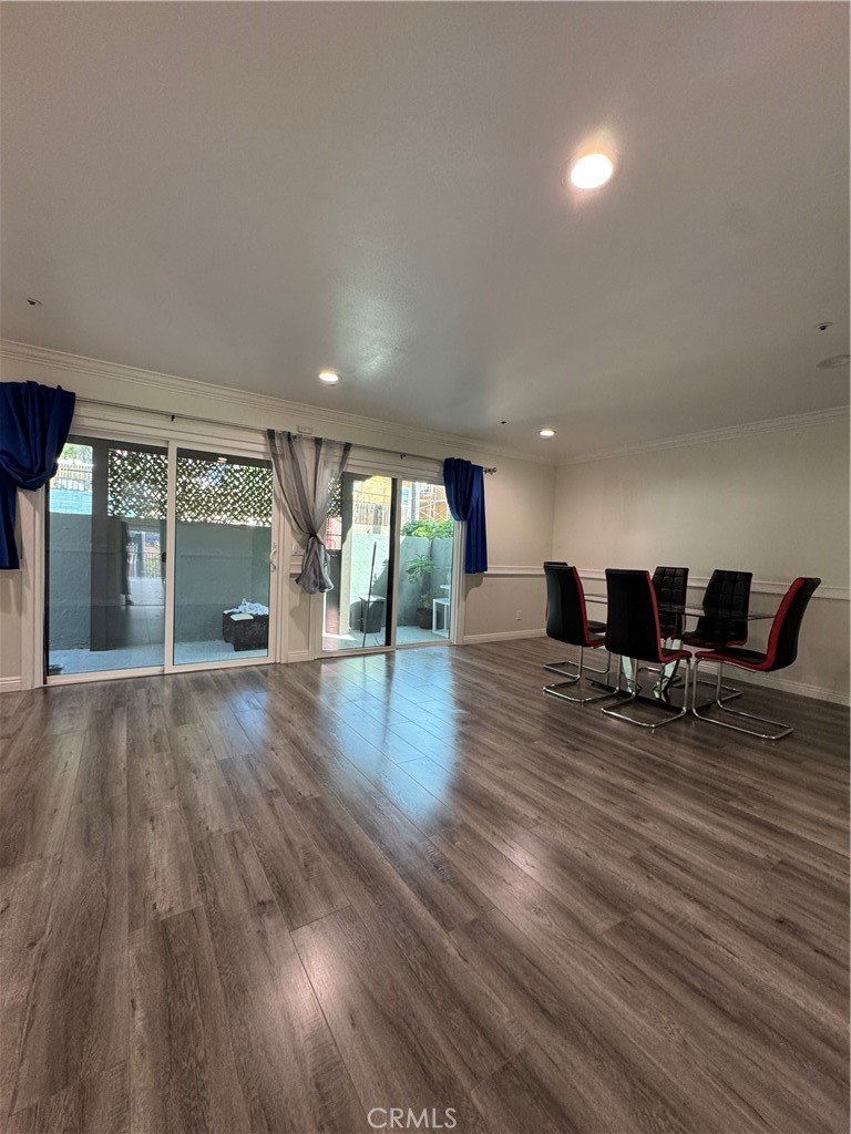 A separate family room opens to a tranquil enclosed patio, creating a seamless indoor-outdoor lifestyle perfect for refined al fresco dining and relaxing California evenings.