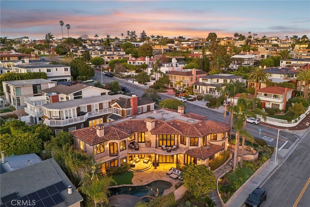 High above the street in the iconic Hill Section of Manhattan Beach, this Southwest-facing corner estate feels like its own private resort—where ocean breezes drift in, sunlight pours through soaring ceilings, and every level delivers a new experience. In a city where space, privacy, and ocean vistas are hard to come by, the Hill Section is one of the few neighborhoods that offers all three—along with a short stroll to the beach, easy access to downtown, and walking distance to award-winning Robinson Elementary. Step inside on the main entry level and the drama begins: dual curved staircases, statement chandeliers, and fresh white oak floors that instantly lighten the mood. Five bedrooms (four ensuite) are thoughtfully positioned alongside a spacious family room and bonus flex space—ideal for homework marathons, movie nights, or a quiet work-from-home escape. Slide outside and you’re transported to a tropical oasis: pool, spa, swim-up bar, tiki hut with grass roof, outdoor fireplace, turf lawn, and bamboo-lined privacy that makes every day feel like a five-star getaway. Upstairs is where life unfolds in grand fashion. The living room opens to a balcony overlooking the lush backyard, while the gourmet kitchen—complete with Sub-Zero refrigeration, Dacor 6-burner range, double warming drawers, two Miele dishwashers, and an expansive granite island—anchors the home with effortless entertaining power. Double butler’s pantries and a built-in work area keep everything running smoothly. A warm library/study with fireplace invites slower moments, while the primary suite is a retreat unto itself: balcony access, dual-entry walk-in closet, soaking tub, dual vanities, and a spa-style shower designed to start and end your days right. Then there’s the level no one sees coming. Take the elevator down and you’ll find a moody, club-inspired escape reminiscent of the Foundation Room at House of Blues—ornate carved doors, ambient lighting, full bar, VIP lounge, theater room, and a vibe that says the night is just getting started. With over 9,000 square feet, six bedrooms, seven baths, multiple living areas, three-car garage, and seamless indoor-outdoor flow, this estate fully captures what makes the Hill Section so sought-after: room to spread out, privacy to unwind, and views that remind you why Manhattan Beach living is in a class of its own. It may feel like a faraway escape. Spoiler alert: it’s right here.