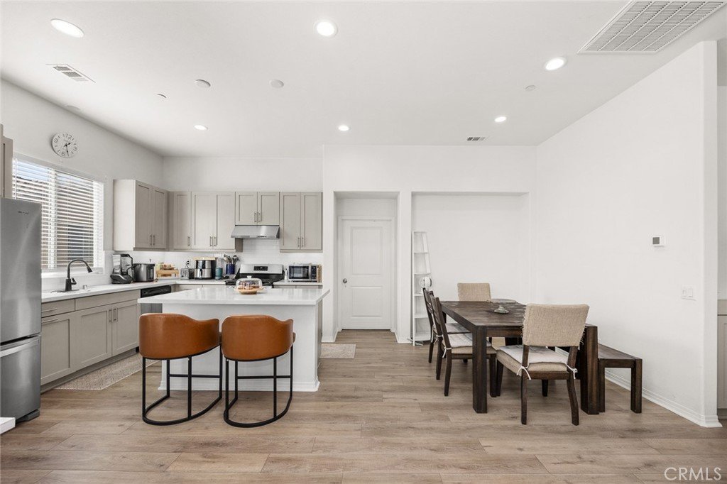 Located in one of Hacienda Heights’ most desirable and convenient neighborhoods, this quiet newer community offers a well-balanced lifestyle. This beautifully designed 3-bedroom townhome emphasizes comfortable indoor-outdoor living, starting with a charming front porch that creates a warm and inviting entry. A second-floor deck provides additional outdoor space, ideal for enjoying fresh breezes or relaxing with a book. The home features a highly desirable first-floor bedroom and full bathroom, offering flexibility for guests, home office use, or multi-generational living. Upstairs, the main living level showcases a spacious open-concept floor plan highlighted by soaring 10+ foot ceilings that enhance natural light and create an airy atmosphere . The kitchen and living areas are enhanced with numerous designer upgrades, including upgraded electrical, recessed LED lighting, painted gray maple shaker cabinetry throughout, and quartz kitchen countertops. An upgraded designer flooring package with laminate flooring runs through the main living spaces, providing both durability and modern style. Thoughtfully upgraded and well-maintained, this home offers modern comfort, functional design, and a desirable location within Hacienda Heights.