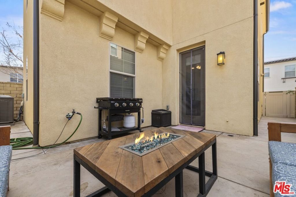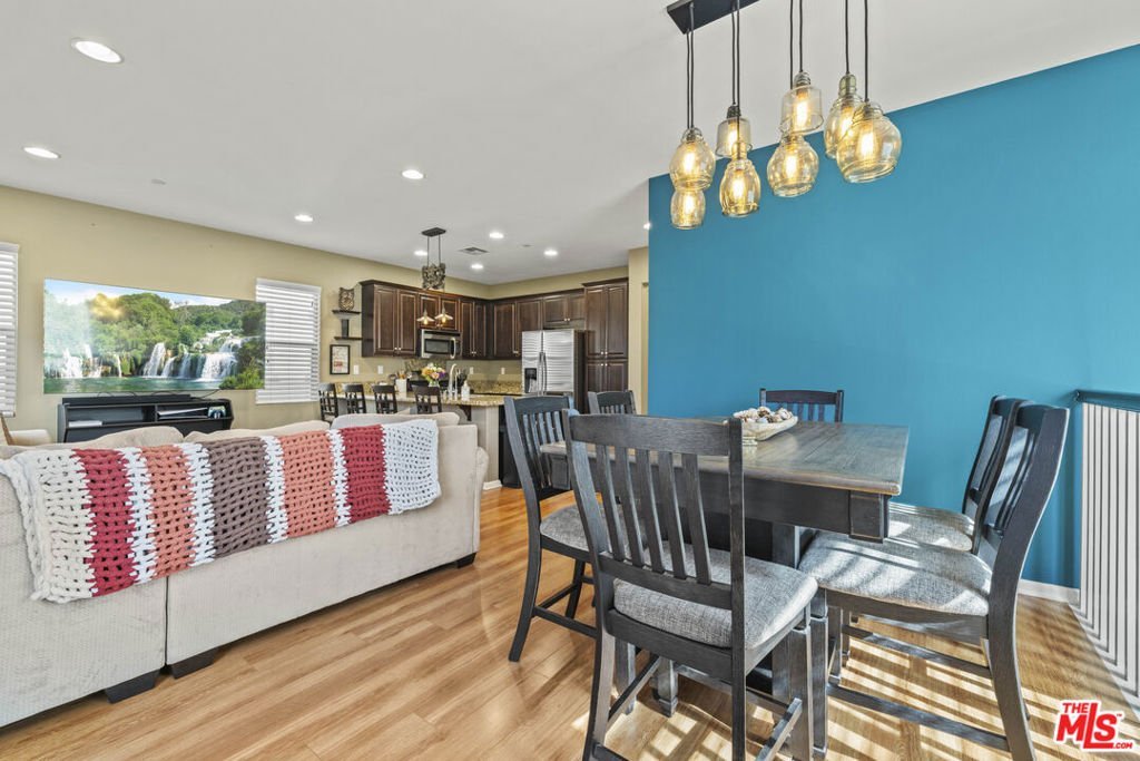 Gorgeous 2-story home in the desirable Villa Metro community. This thoughtfully designed floor plan features a first-floor bedroom and full bath, plus a den/officeideal for guests or flexible living.The second level offers an open-concept family room, dining area, and beautifully upgraded kitchen with granite countertops, stainless steel appliances, dark wood cabinetry, and breakfast bar. The bright primary suite includes an attached bath with dual sinks. Additional features include a 2-car attached garage, laundry area, and a mix of carpet and hardwood flooring throughout. Prime Saugus location close to shopping, dining, and commuter access. HOA $332.38/ Month MelloRoos $1,769/ Annually