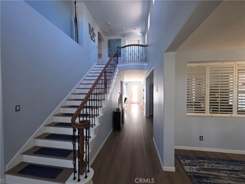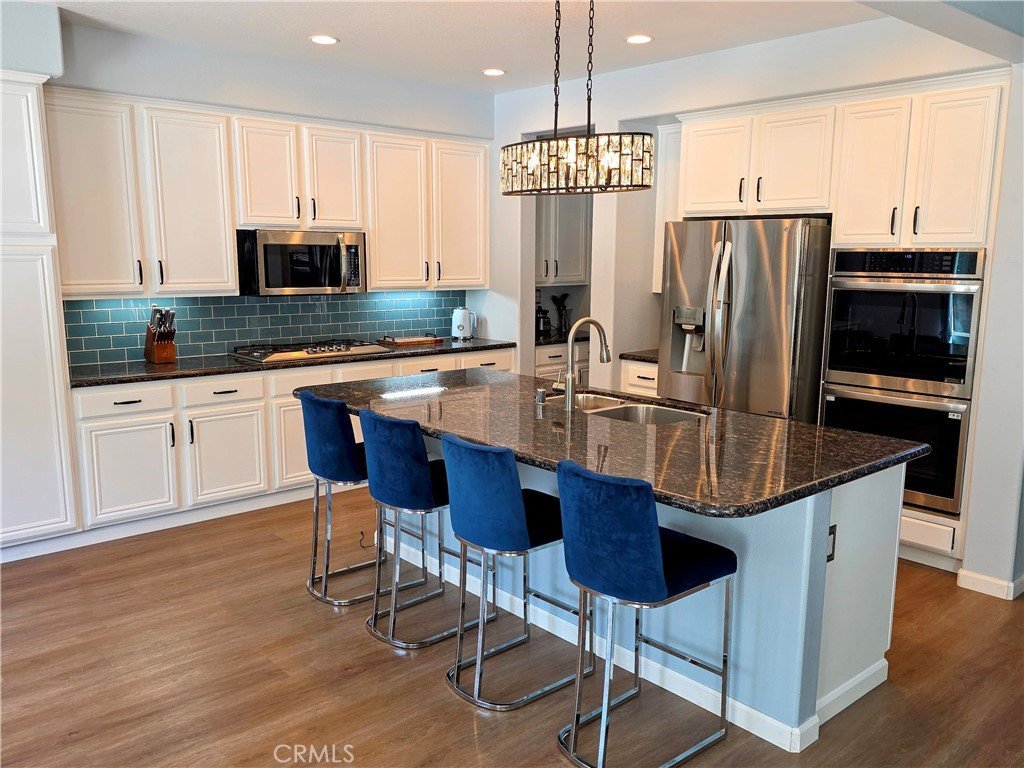 **PROFESSIONAL PHOTOS WILL BE UPLOADED by monday** Attention Saugus & Santa Clarita Buyers! Welcome to this one-of-a-kind hilltop executive home that includes Solar (leased with low cost) perfectly situated in the highly sought-after Pacific Crest community. This rare and stunning Timberline Plan 3 offers over 3,100+ square feet of luxurious living space, featuring 4 bedrooms with an optional 5th bedroom downstairs (currently not a bedroom) and 3 bathrooms. From the moment you enter, you’ll notice the extensive upgrades throughout, including beautiful laminate flooring, plantation shutters, and custom drapery. The home boasts an expansive family room with a custom entertainment center and cozy gas fireplace, alongside a formal dining room highlighted by elegant coffered ceilings. The inviting front sitting area opens through double doors to a covered patio—perfect for relaxing or entertaining guests. At the heart of the home is a massive chef’s kitchen featuring a large center island, upgraded granite countertops, stainless steel appliances, 5-burner cooktop, double ovens plus a microwave, butler’s pantry storage. Upstairs, a striking wrought-iron staircase leads to four oversized bedrooms, including a grand primary suite with breathtaking mountain views from the front windows. The luxurious primary bath offers dual sinks, a large walk-in tiled shower, a separate soaking tub, and dual walk-in closets. Skylights brighten the hallway that lead to the 3 other generous sized bedrooms plenty of closet storage. Step outside to your private backyard retreat, complete with a lap pool, artificial turf play area, side yard space. Additional highlights include elegant plantation shutters throughout, a spacious laundry room with ample storage, and a dual HVAC system for year-round comfort. The three-car attached pull-through garage offers exceptional flexibility—ideal for multiple vehicles, a boat, recreational equipment, or even a workshop. Ideally located directly across from the community park with a covered playground, this home offers both convenience and lifestyle. Perfectly situated near highly rated schools such as Mountain View Elementary, as well as nearby parks, shopping, and dining, this home truly checks every box. Opportunities like this don’t come often—schedule your showing and make it yours today! Don’t miss this incredible opportunity as homes in this community don’t last and sell fast.