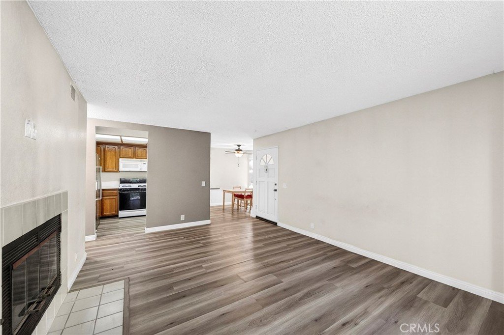 Lower level 2 bedroom, 2 bathroom condo located in a gated community in Torrance P.O. This unit features a functional floor plan with a spacious living room, gas fireplace, and sliding glass doors leading to a private patio. The dining area connects to the kitchen, offering a practical layout for everyday living. The primary bedroom includes an ensuite bathroom and ample closet space. The second bedroom and additional full bath provide flexibility for various uses. Additional features include central air and heat and two covered carport spaces. Community amenities available; buyer to verify HOA details and financing options. Conveniently located near shopping, dining, and freeway access.